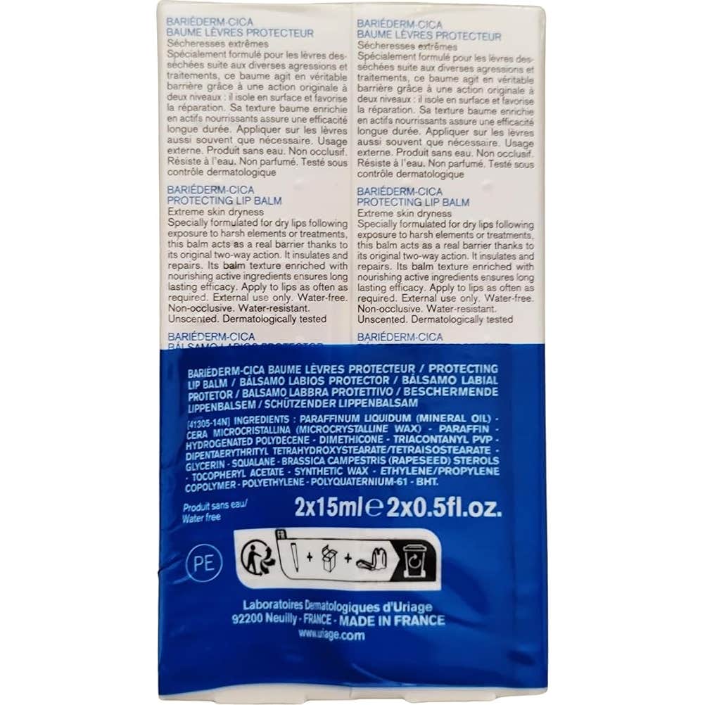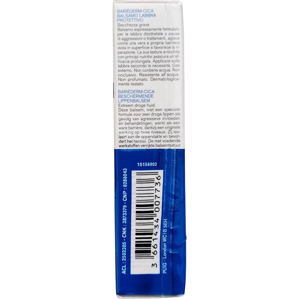 Bálsamo protector de labios con una fórmula innovadora diseñada especialmente para cuidar los labios secos y dañados tras agresiones y tratamientos.