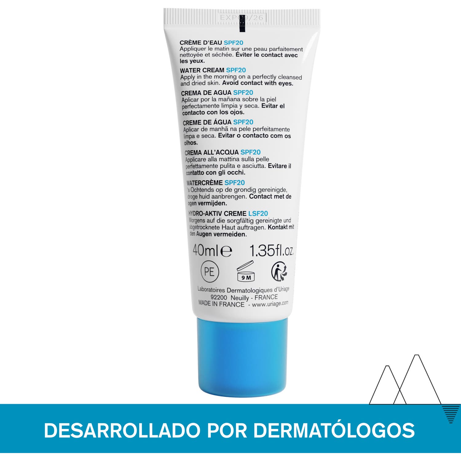 Uriage Crema de agua ligera SPF20 40ml es una crema hidratante para todo tipo de piel, especialmente normal a mixta con agua termal de Uriage. Reactiva la hidratación cutánea y ayuda a restaurar el efecto barrera de la piel.