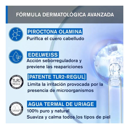 Es un champú purificador y regulador con agua termal de los Alpes Franceses. Contribuye a calmar el cuero cabelludo y proporciona una sensación de confort y frescura. Con una fragancia fresca y agradable y una textura espumante y untuosa, deja el cabello sano y sedoso.