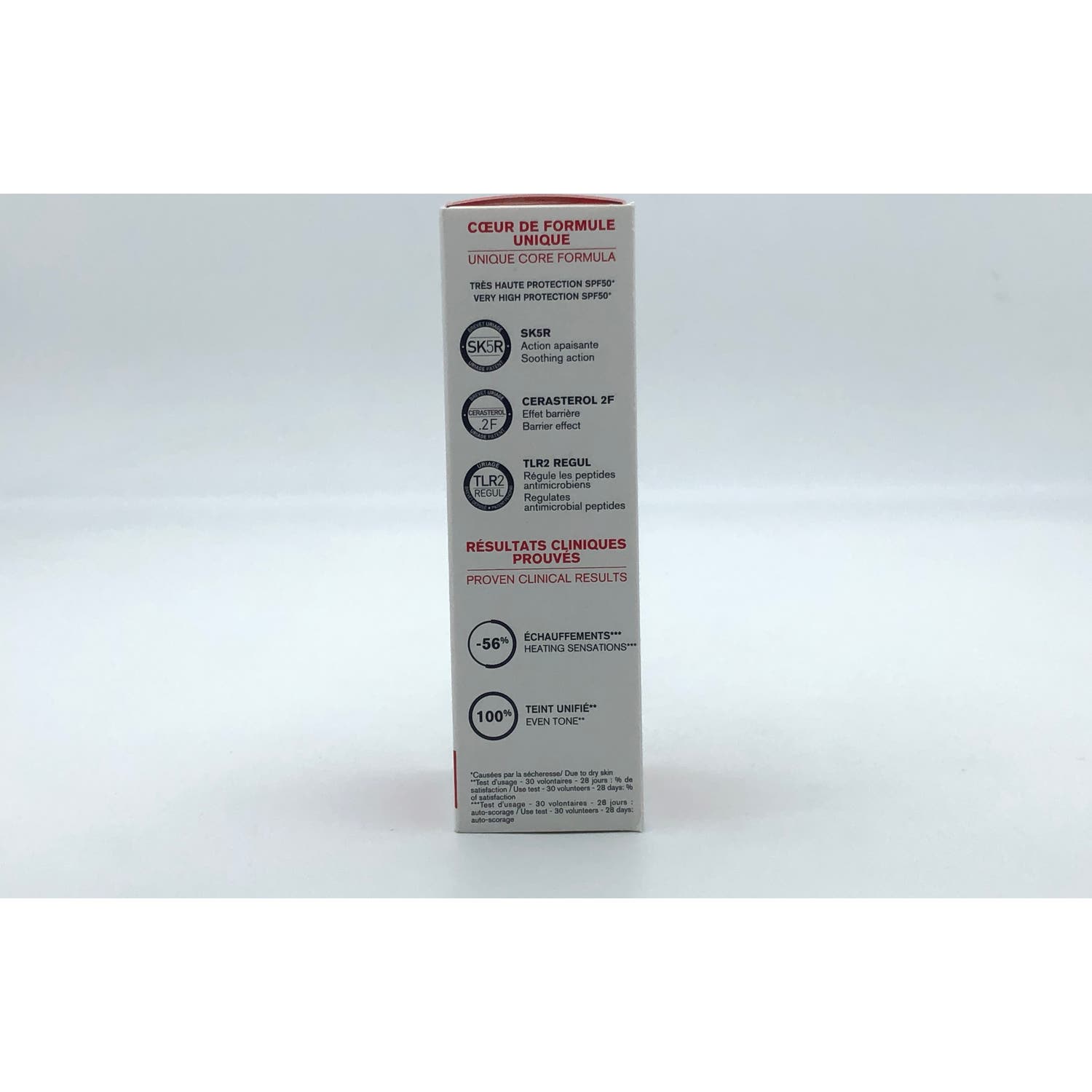 Crema suave con SPF 50+ que ayuda a disimular las rojeces, contribuyendo a unificar e iluminar el rostro a la vez que protege de los rayos solares UVA y UVB.