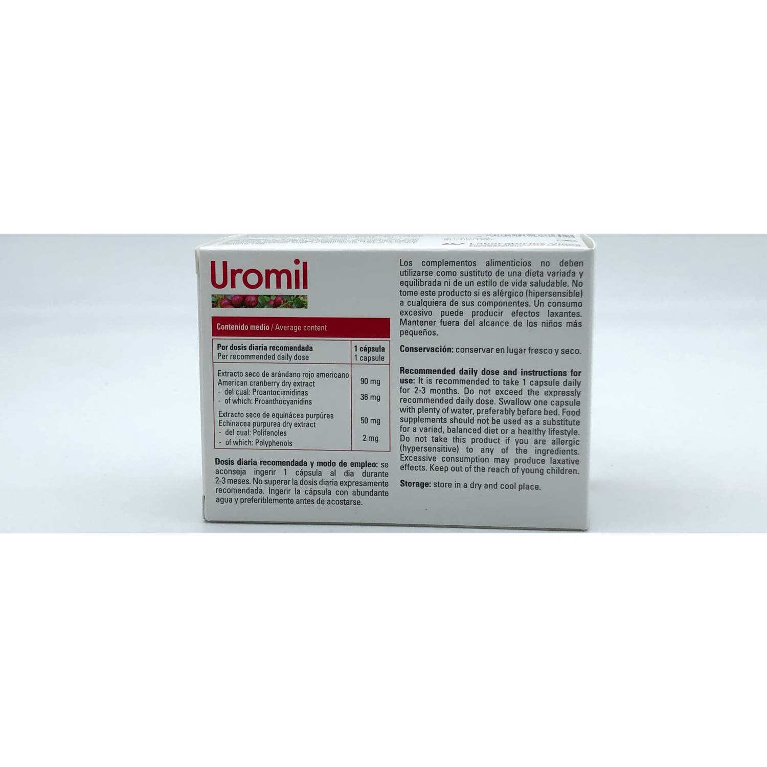 Uromil 90caps es un complemento alimenticio en cápsulas que contribuye a prevenir la cistitis, gracias a su extracto de arándano rojo americano, conocido por sus beneficios antibacterianos que favorecen la salud general del sistema urinario.