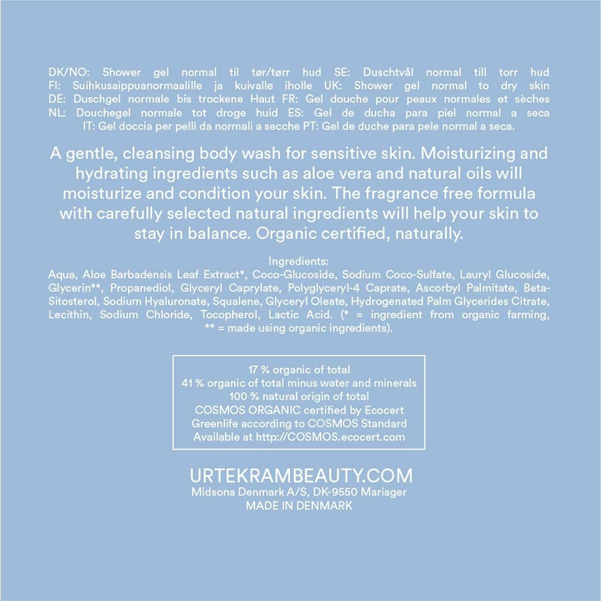 Urtekram Fragance Free Gel de Baño 500ml es un gel limpiador suave especialmente formulado para pieles sensibles. Contiene ingredientes hidratantes como el aloe vera y aceites naturales que mimarán tu piel, manteniéndola equilibrada. Este gel de baño sin fragancia está certificado por Ecocert Cosmos Organic, es 100% de origen natural y vegano. Para su uso, aplica una pequeña cantidad sobre la piel húmeda, masajea suavemente hasta obtener espuma y aclara con abundante agua. Recuerda que es para uso externo, evita el contacto con los ojos. Entre sus ingredientes se encuentran el extracto de Aloe barbadensis, Coco-Glucoside, Sodium Coco-Sulfate, Lauryl Glucoside, Glycerin, Propanediol, entre otros. Urtekram Fragance Free Gel de Baño 500ml es la opción ideal para cuidar y limpiar tu piel de forma suave y natural.