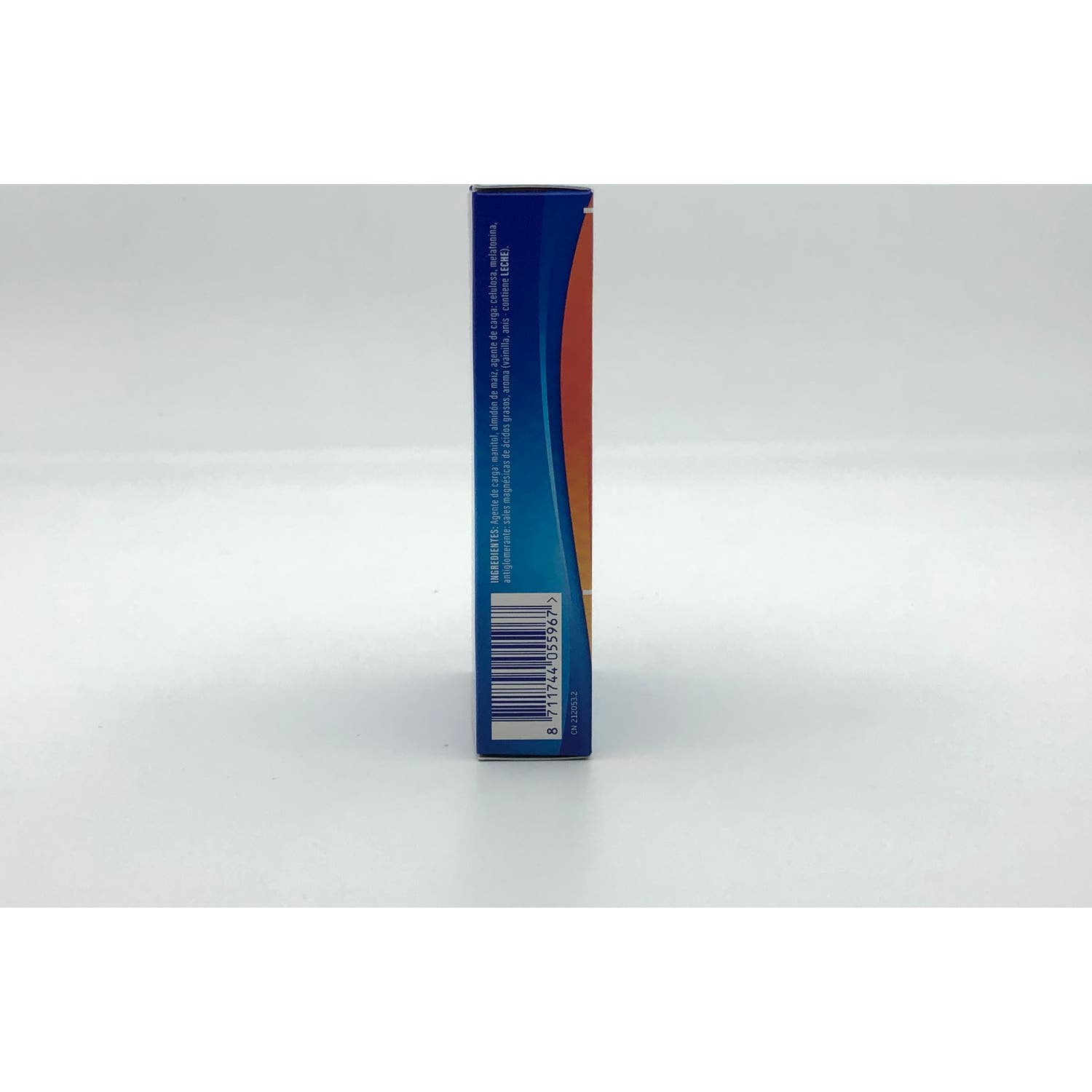 Agente de carga: manitol, almidón de maíz, agente de carga: celulosa, melatonina, antiglomerante: sales magnésicas de ácidos grasos, aroma (vainilla, anís - contiene LECHE).