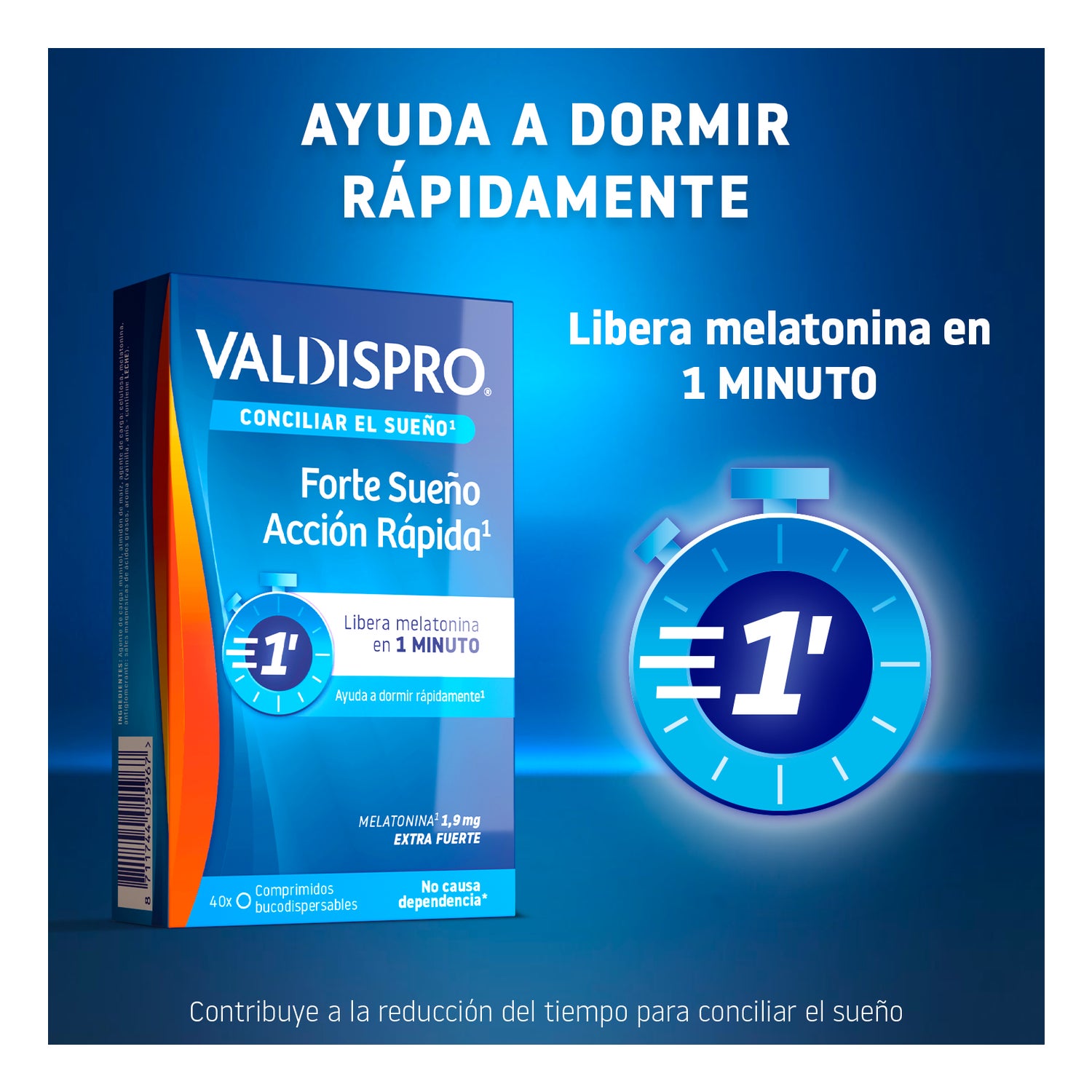 Valdispro Forte Sueño Acción Rápida 40comp es un complemento alimenticio enriquecido con melatonina de acción rápida que facilita la conciliación del sueño actuando en tan sólo 1 minuto desde su ingesta.
