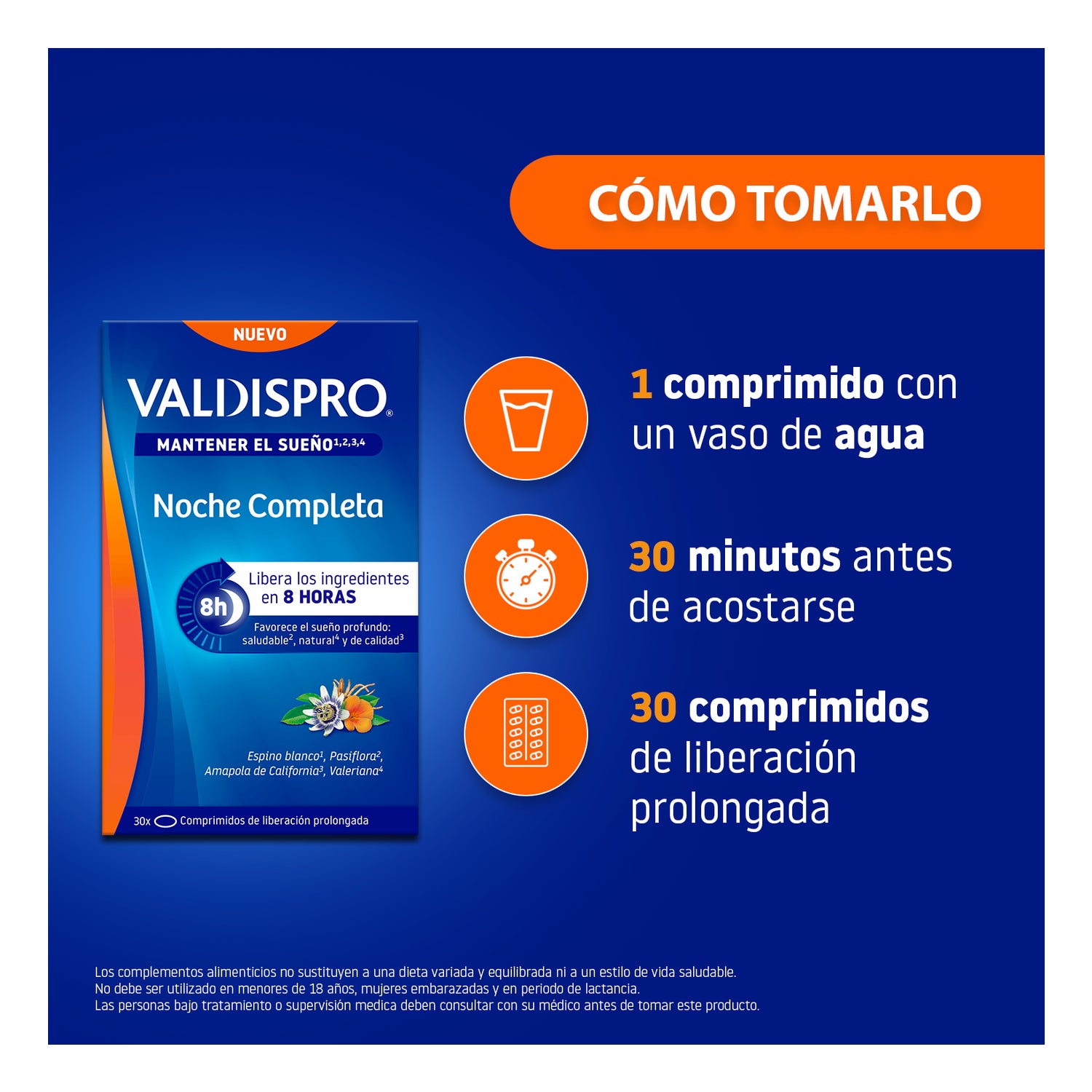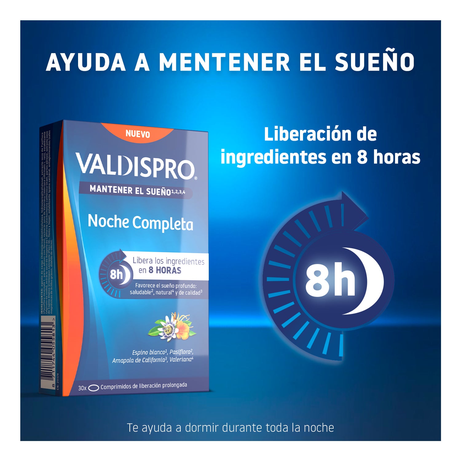 Valdispro Noche Completa 30comp es un complemento alimenticio que contribuye a mejorar la calidad del sueño y a facilitar su conciliación.
