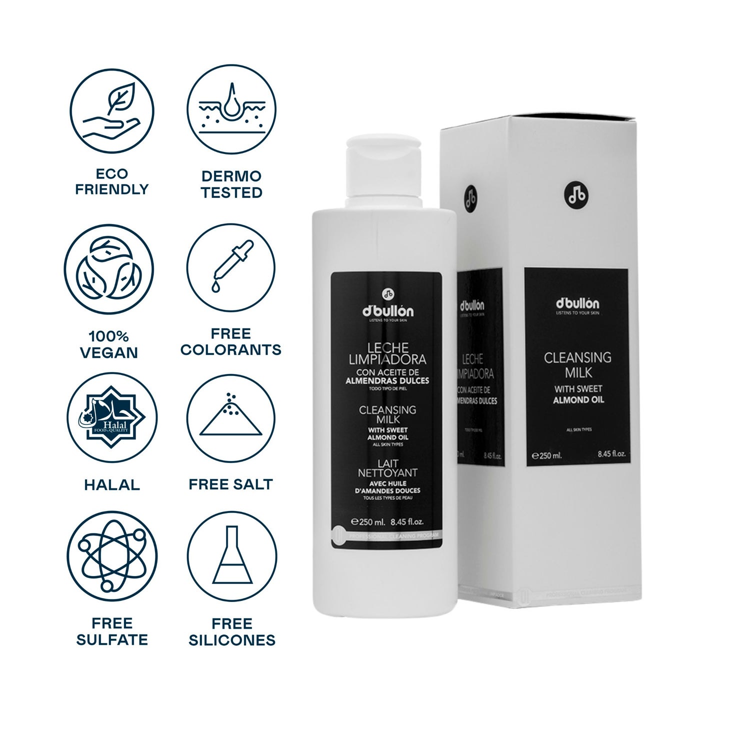 Leche facial limpiadora muy fácil aplicación, esta leche limpiadora es muy emoliente y con un gran poder de arrastre. Limpia la piel, elimina el maquillaje diario pero además el maquillaje profesional, quitando los residuos decorativos o de caracterización artística.
