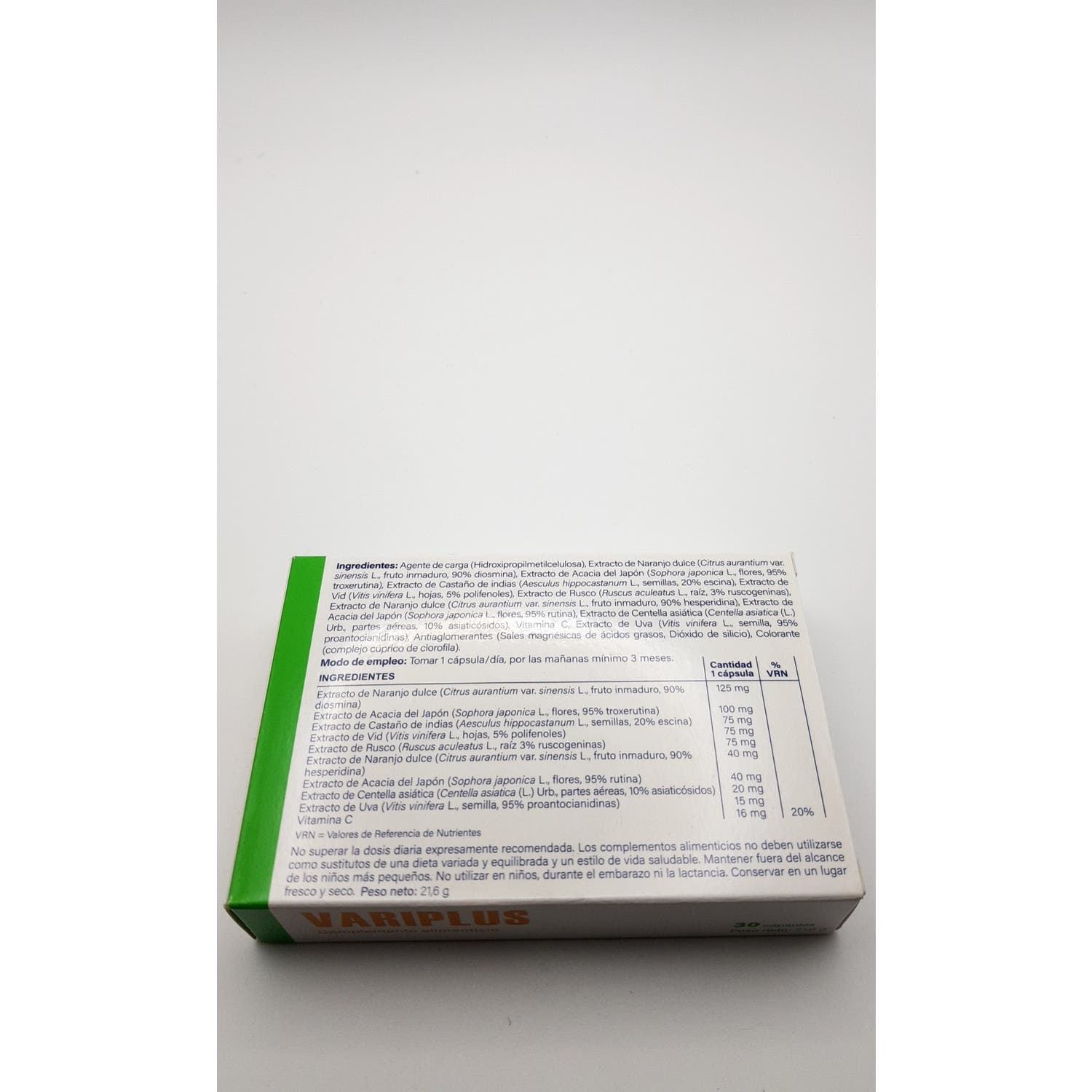 Variplus 30 Caps es un complemento alimenticio elaborado a partir de ingredientes naturales. Los diferentes extractos de plantas y vitaminas que contienen, ayudan a evitar que se dilaten las venas o se filtren líquidos a los tejidos, pudiendo así prevenir la hinchazón y pesadez en las piernas.