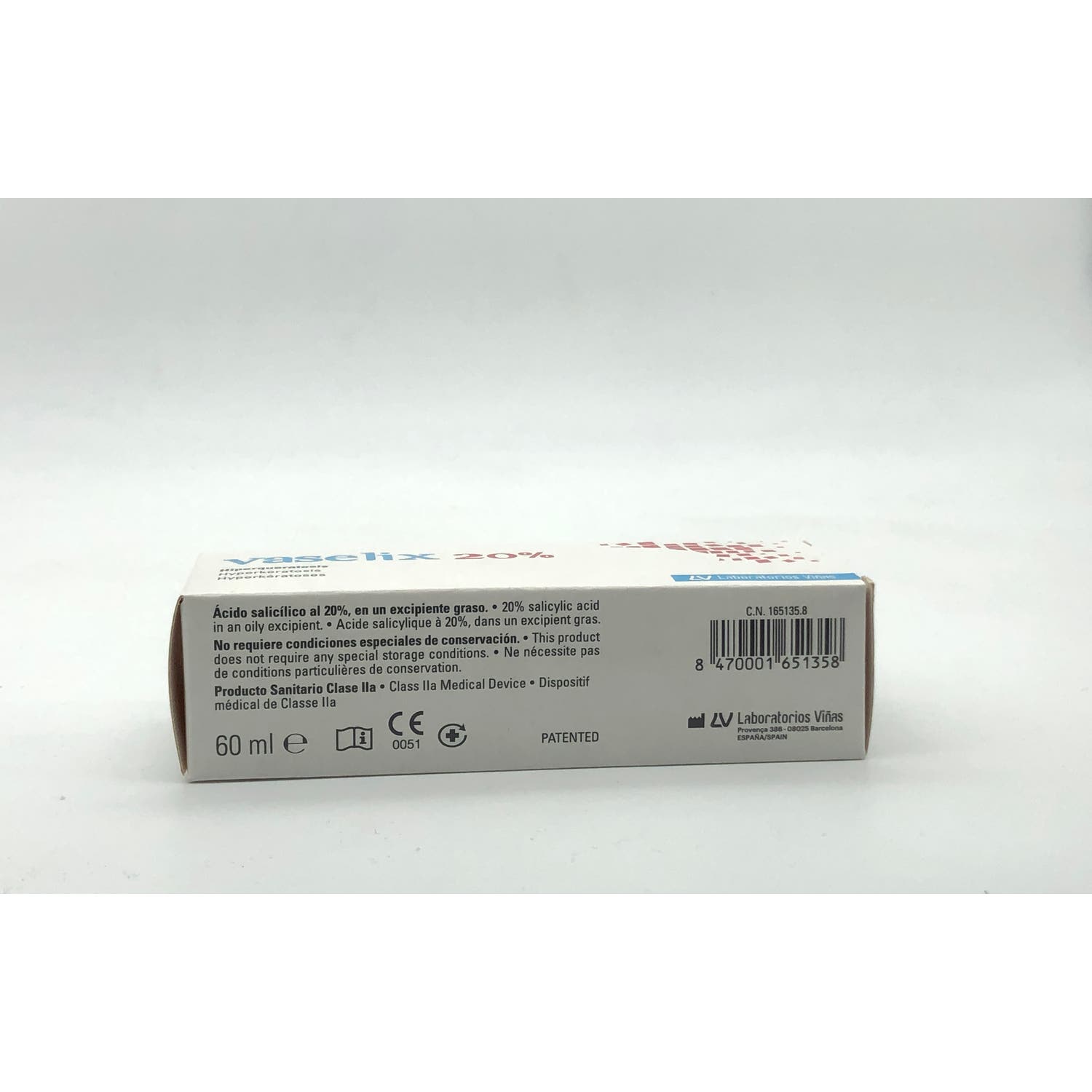 Vaselix 20% Salicílico 60ml es una crema formulada a partir de ácido salicílico al 20% que contribuye a reducir las durezas de la piel y ofrecer un tacto suave, devolviendo la piel a su estado natural.