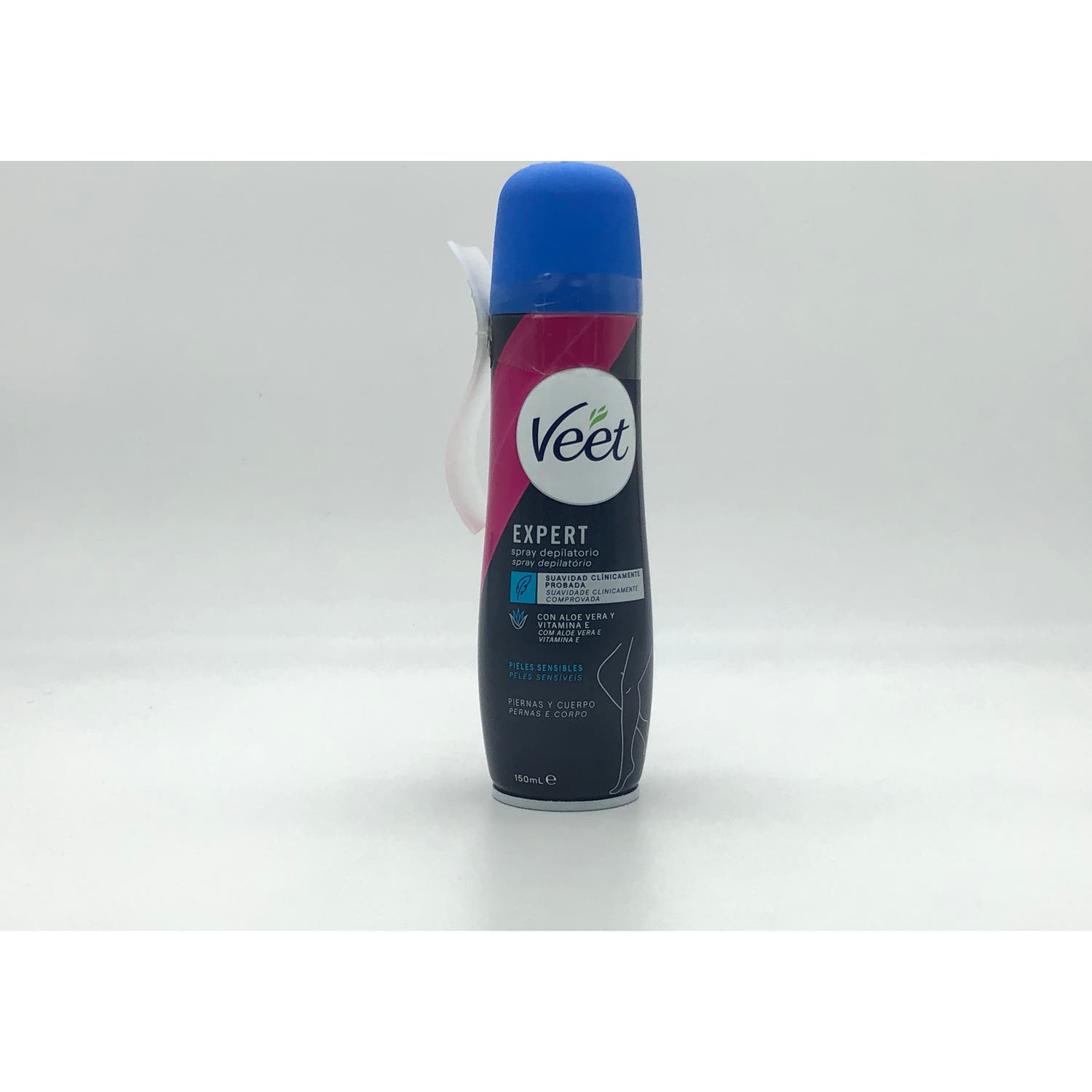 Crema para depilar en un formato de espray. Desarrollada por Veet para no dañar las pieles sensibles y obtener un resultado rápido y eficiente.
