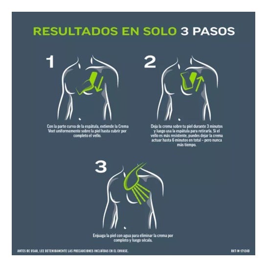 Aplicar la crema en el área de preferencia, esperar de 3 a 6 minutos y retirar con ayuda de la espátula.