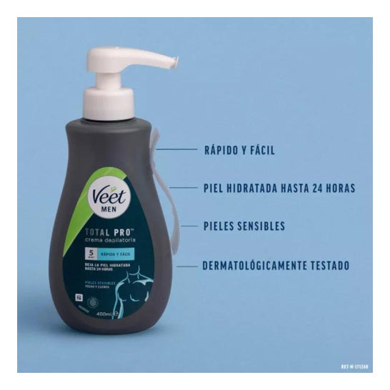 La depilación dejó de ser hace tiempo algo netamente femenino. Es por ello que Veet ha desarrollado un gel depilador pensando en hombres cuya piel es sensible. Este producto ha sido diseñado para diversas áreas del cuerpo: axilas, pecho, hombros, piernas, brazos, espalda, ingle y antebrazos. Su fórmula remueve el vello de forma profunda, siendo efectivo incluso en casos de vello reducido, pues actúa directamente desde la raíz.