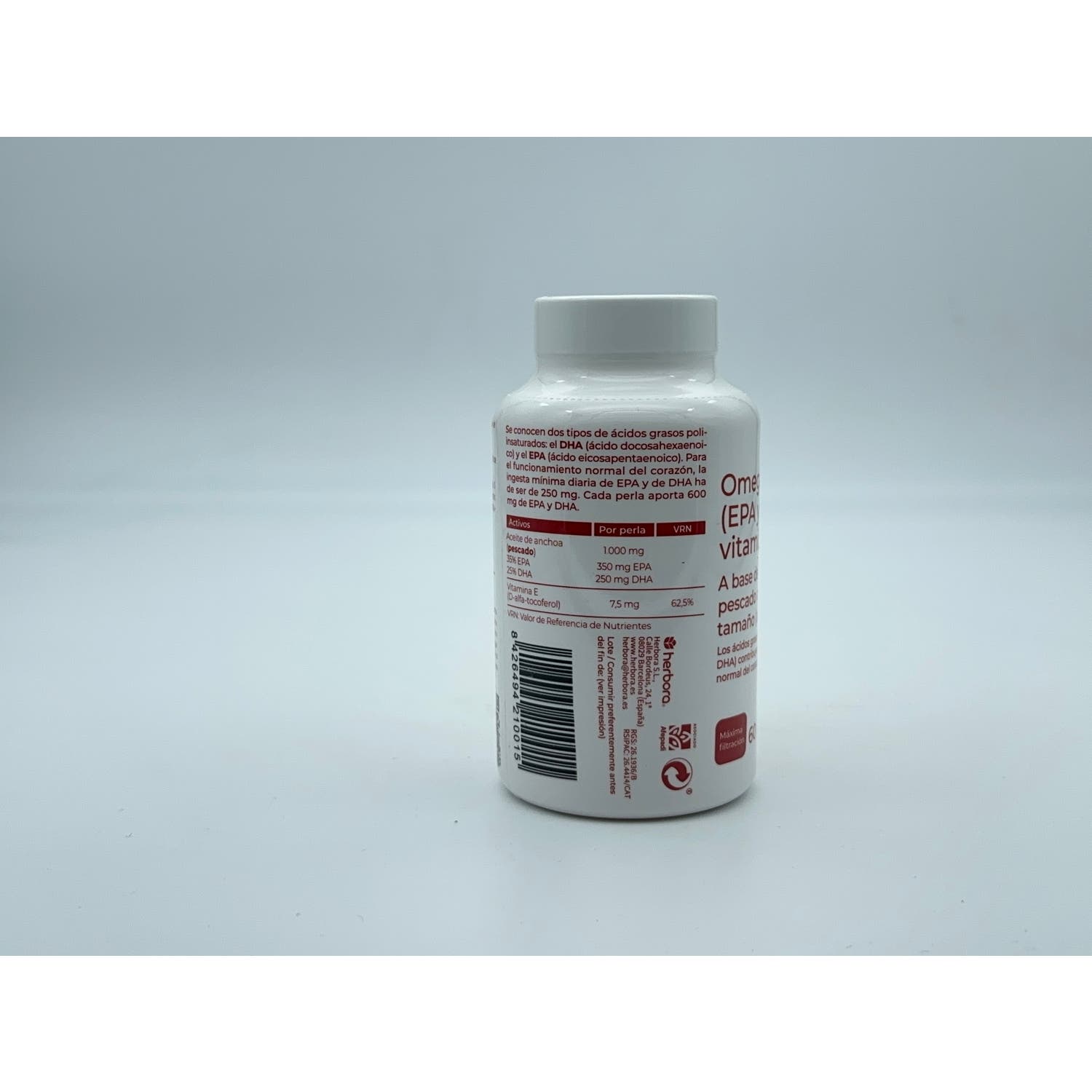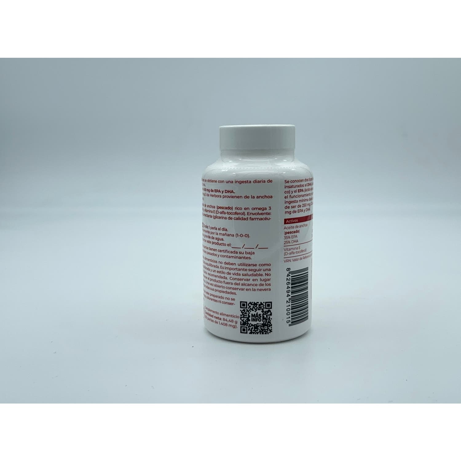 Aceite de anchoa (pescado) 1.000 mg, 35% EPA 350 mg EPA, 25% DHA 250 mg DHA, Vitamina E (D-alfa-tocoferol) 7,5 mg (62,5% VRN).