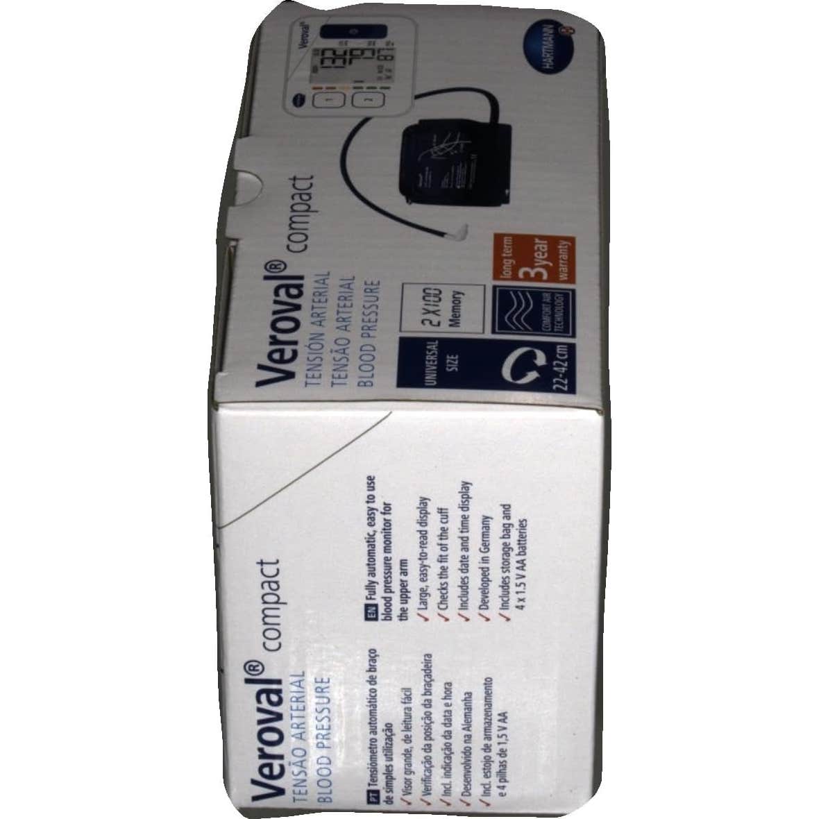 El tensiómetro compacto para brazo Veroval es un dispositivo especialmente diseñado para tomar la tensión arterial en el brazo en casa, que ofrece una medición automática de alta precisión con control de la posición del manguito para una máxima fiabilidad. Detecta y muestra las arritmias cardiacas, proporcionando un control exhaustivo de su salud cardiovascular. La tecnología Comfort Air garantiza una medición rápida y cómoda, mientras que el manguito universal se adapta a diámetros de 22 a 42 cm. Su manejo intuitivo, una gran pantalla y un sistema de clasificación por colores basado en las recomendaciones de la OMS facilitan la lectura de los resultados. Con funciones avanzadas como la visualización de la fecha y la hora, dos perfiles de usuario, una memoria para 100 lecturas por usuario y lecturas medias, este tensiómetro ha sido desarrollado en Alemania y está validado por la Sociedad Europea de Hipertensión (ESH).El tensiómetro de brazo compacto Veroval® está recomendado para medir la tensión arterial en la parte superior del brazo.Se suministra con una funda protectora y 4 pilas AA de 1,5 V.