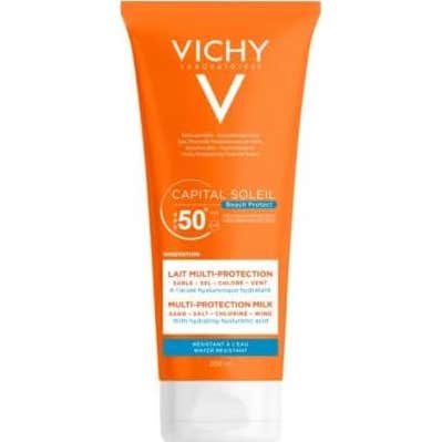 Vichy Capital Soleil Beach Leche Protectora SPF50+ 200ml es una crema con SPF50+ que ayuda a proteger la piel contra los rayos solares UVA-UVB.