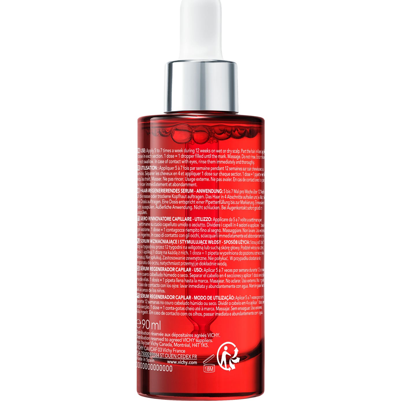 Primer sérum regenerador capilar DERCOS con un 1,5 % de Aminexil y jengibre + niacinamida para una doble acción: reduce la caída del cabello* y estimula su crecimiento**.