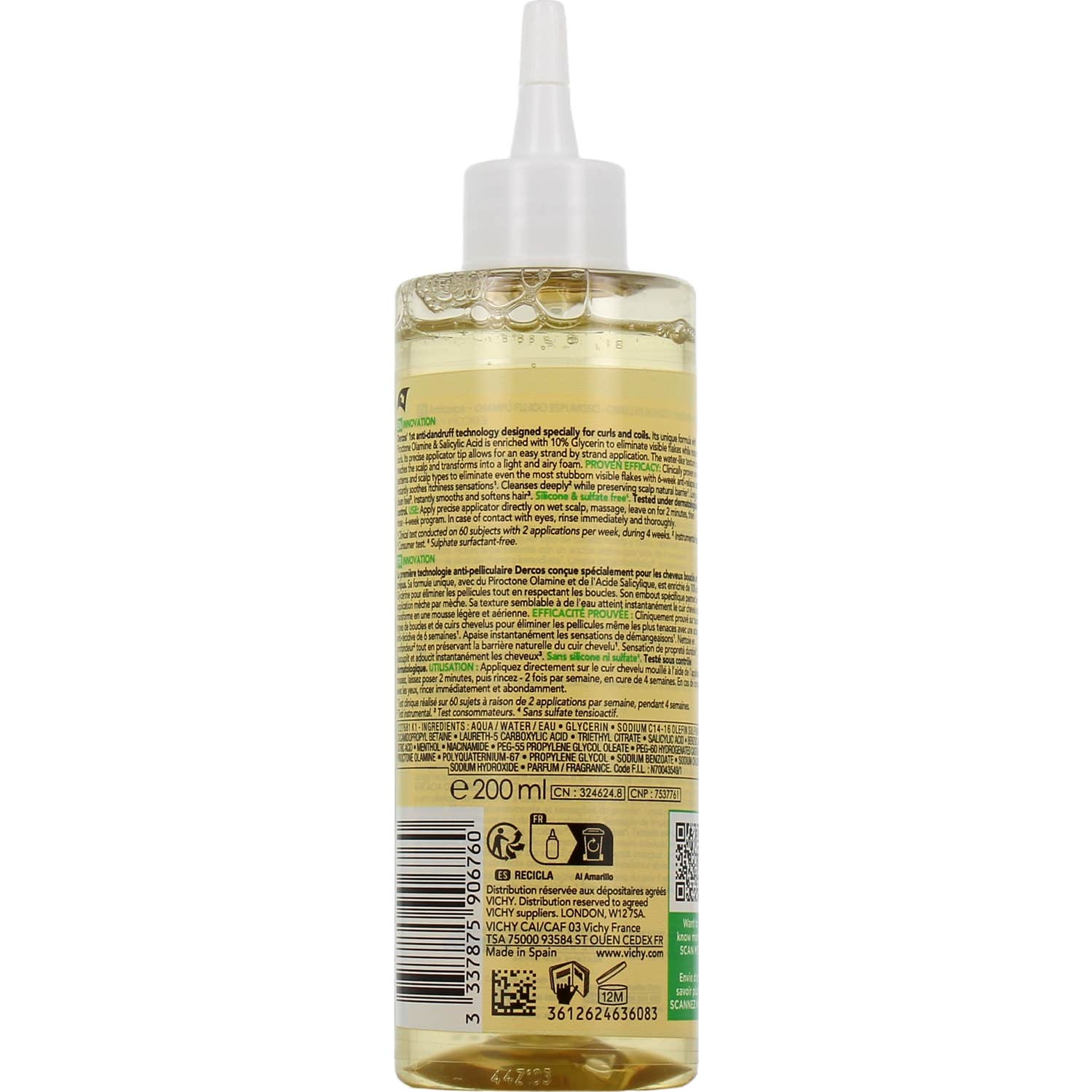 Vichy Dercos Champú Fluido Espumante Anticaspa 200 ml es un producto diseñado para combatir la caspa, especialmente formulado para cabellos rizados y encrespados.
