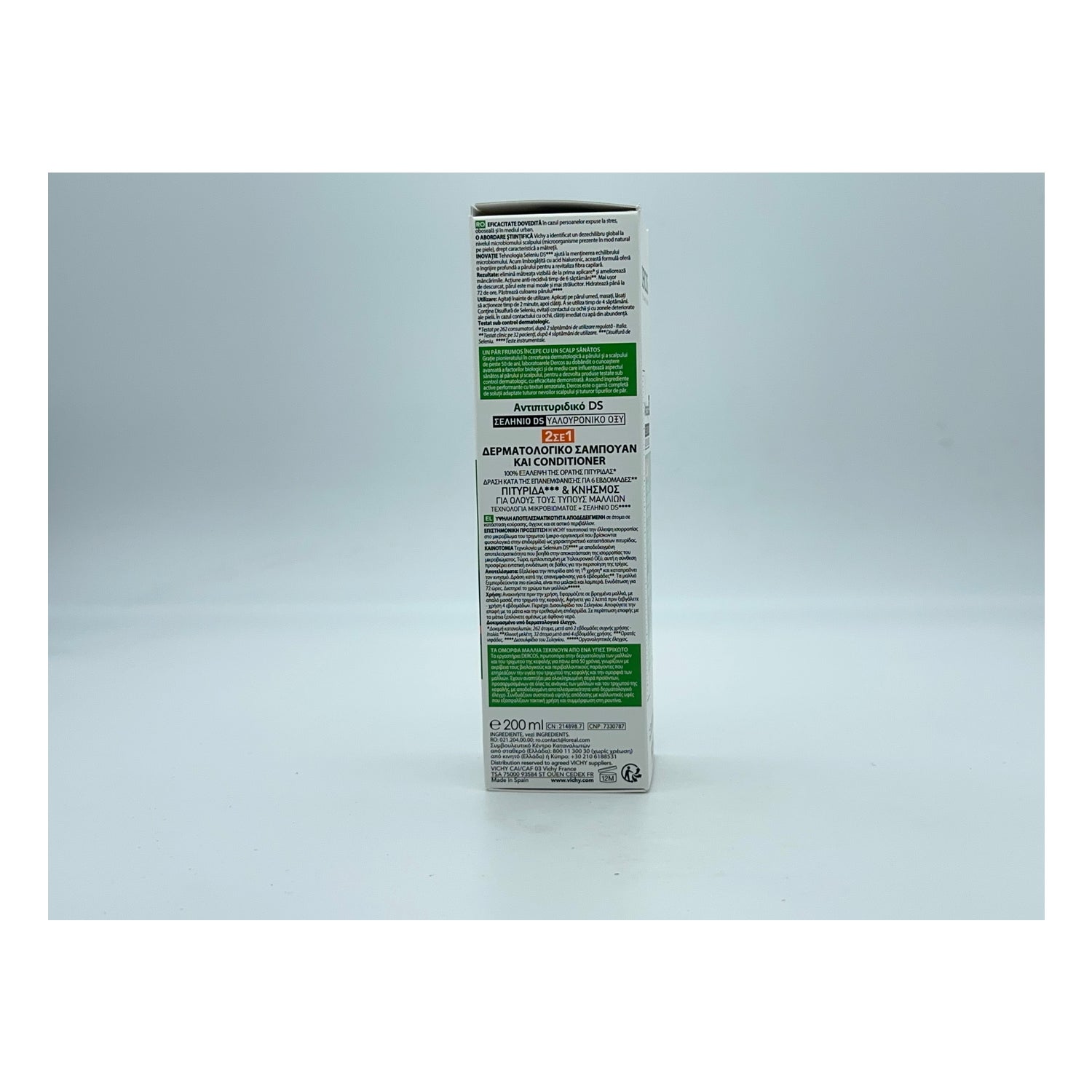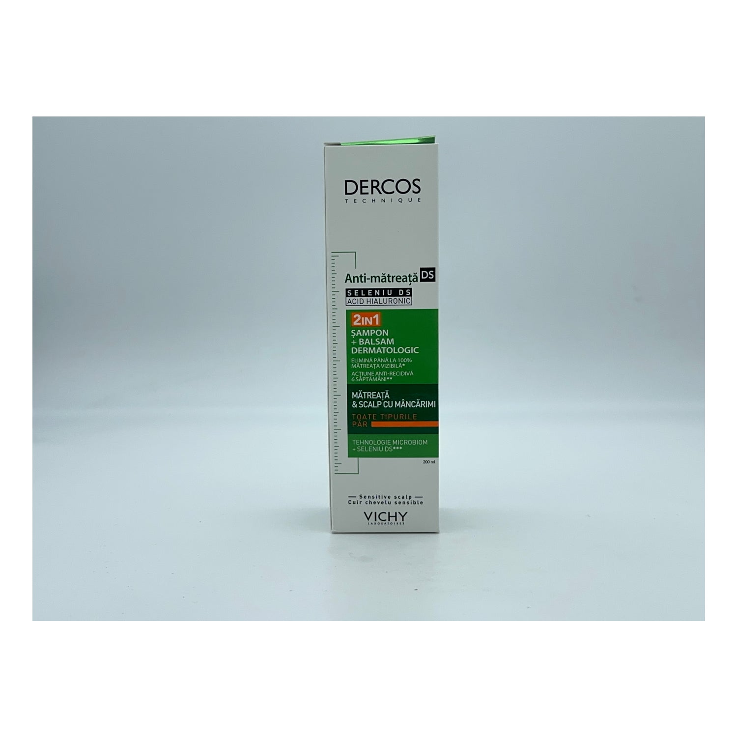 Vichy Dercos Technique Anticaspa DS Champú 2 En 1 200ml es un champú y acondicionador en un solo producto que ayuda a eliminar la caspa y reequilibrar el microbioma del cuero cabelludo.