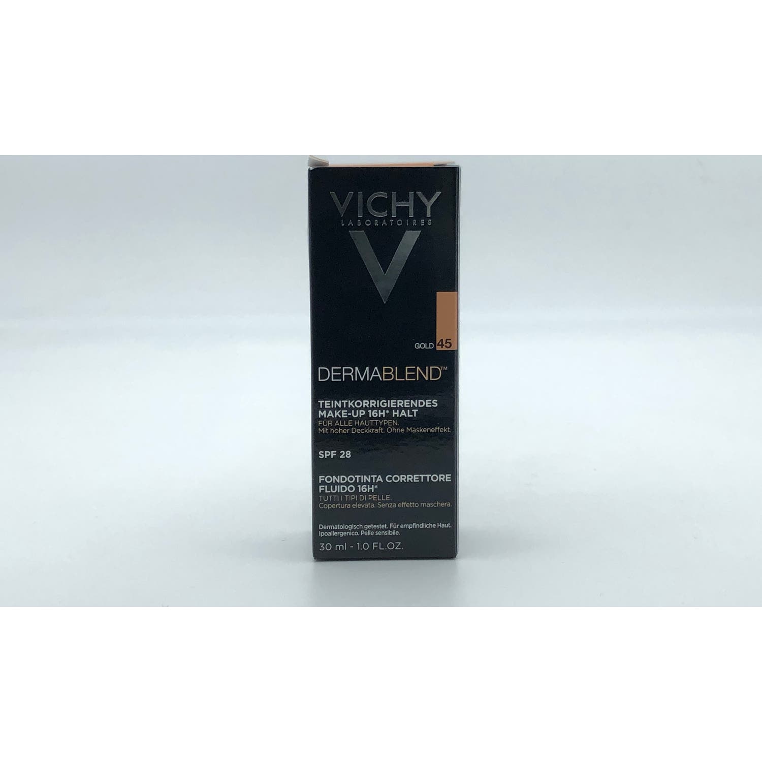 Vichy Dermablend Base de Maquillaje Fluido Corrector 16h 45 Gold 30ml es una base de maquillaje con una textura fluida y ligera.
