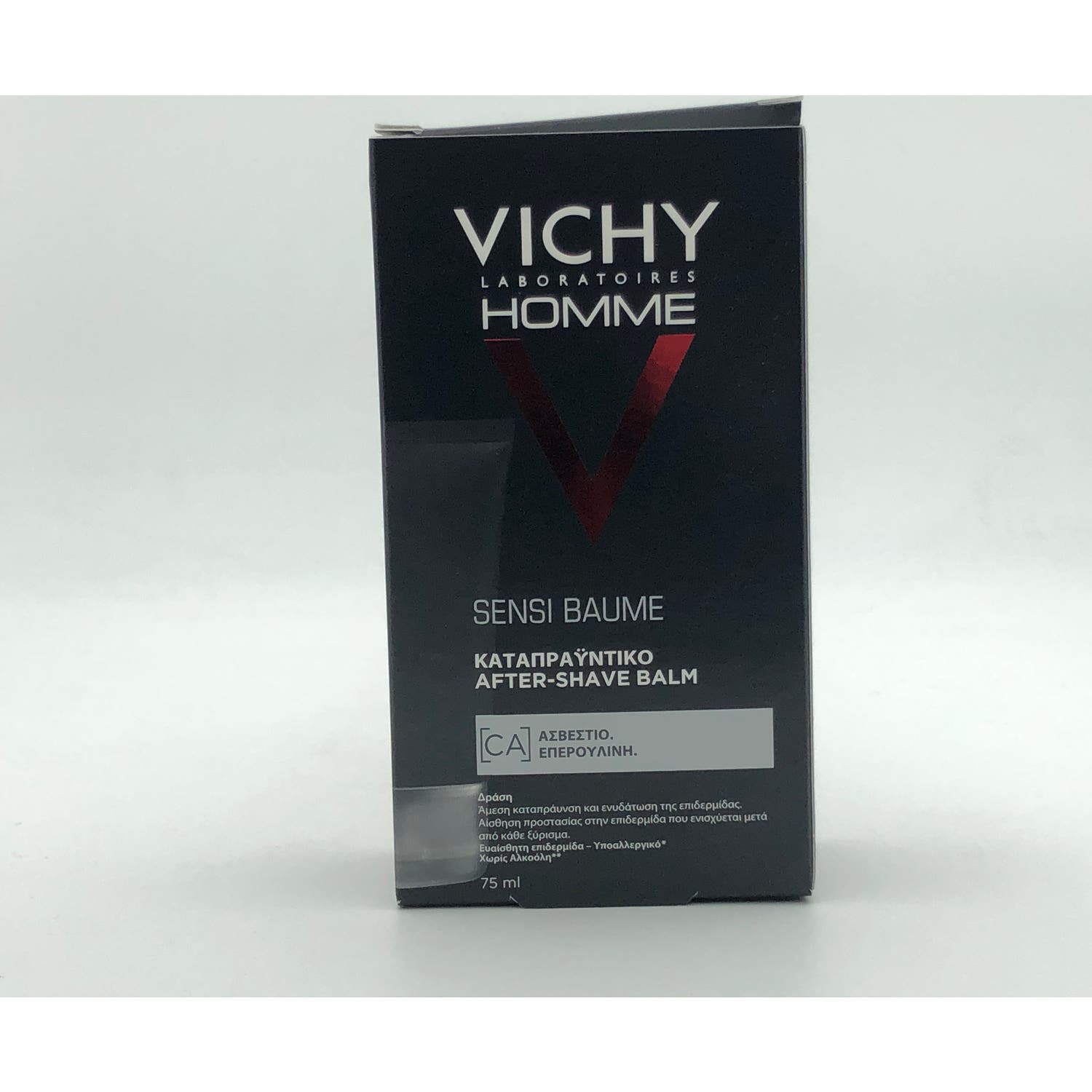 Vichy Homme Sensi Baume Bálsamo Aftershave Calmante 75ml es un bálsamo reparador que equilibra el estado de la piel después de rasurar el pelo y devolver al rostro un aspecto saludable e hidratado.