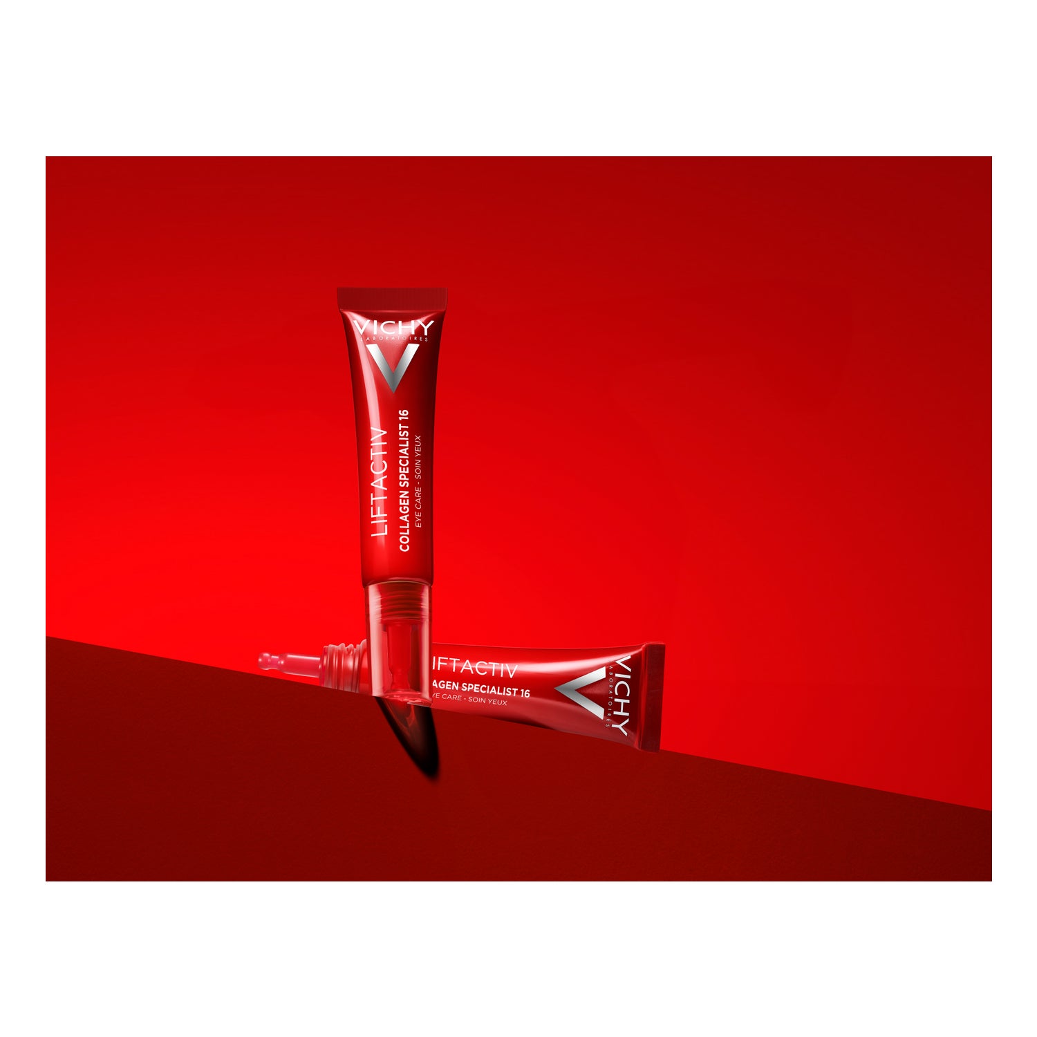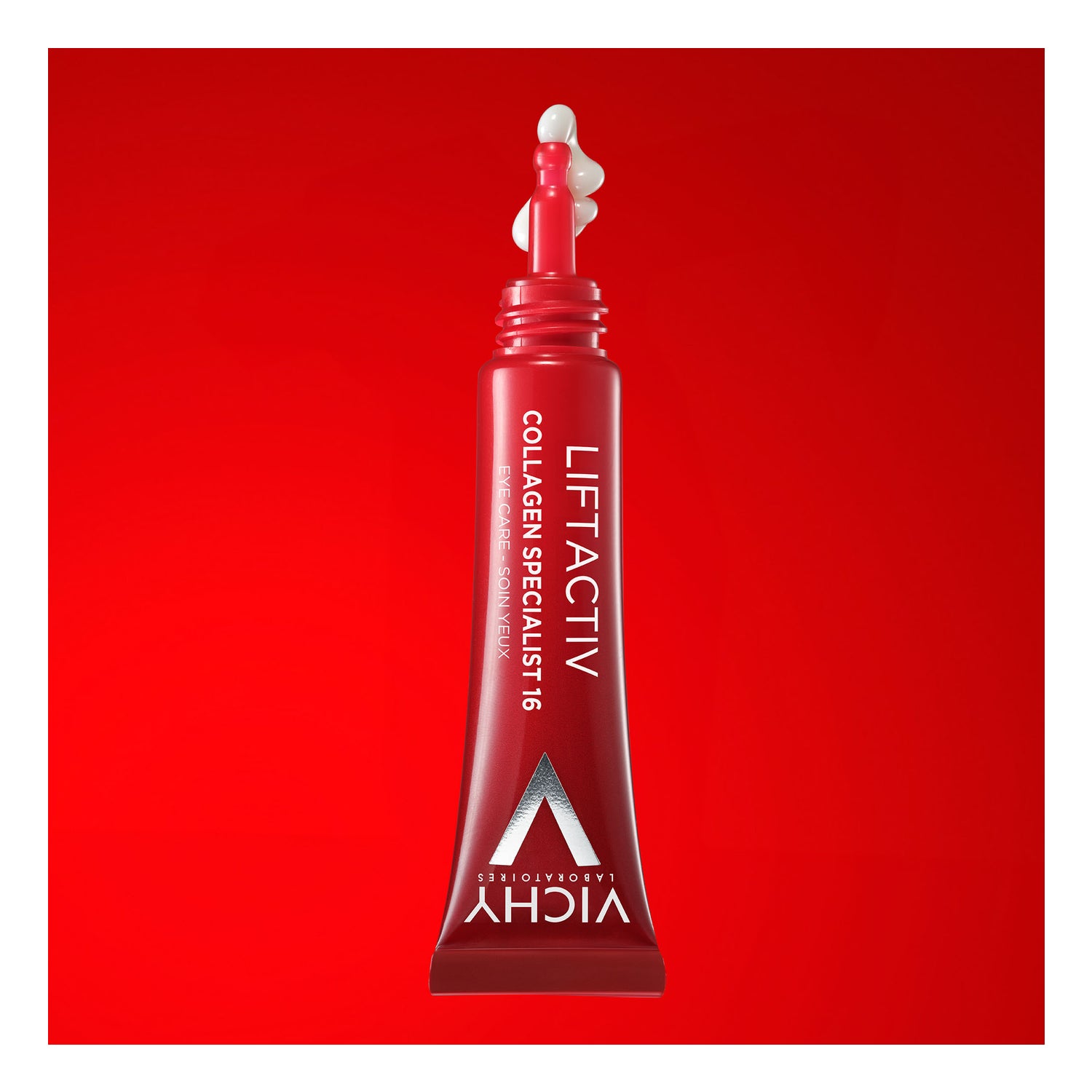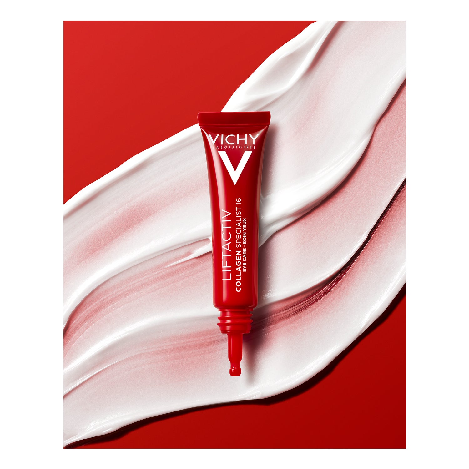 Vichy Liftactiv Collagen Specialist 16 Eye Care 15ml está diseñado para tratar eficazmente las patas de gallo, las líneas de expresión bajo los ojos, las bolsas, las ojeras y los párpados caídos. Su fórmula está enriquecida con un exclusivo complejo pro-colágeno que estimula la producción de colágeno en la piel, preservando su juventud.