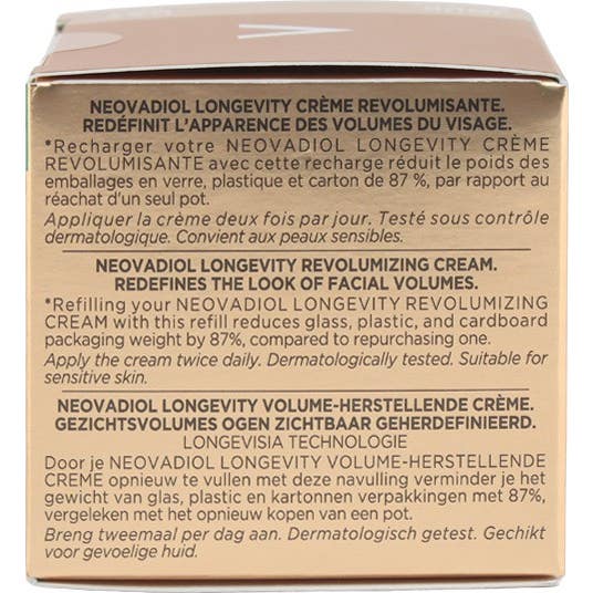 Además, Vichy Neovadiol Longevity Crema Revitalizante se presenta en un envase recargable, lo que permite reducir la cantidad de embalaje en un 87% al utilizar la recarga correspondiente. Este enfoque sostenible incluye un sencillo proceso de recarga, que fomenta el reciclaje y la reducción de residuos.