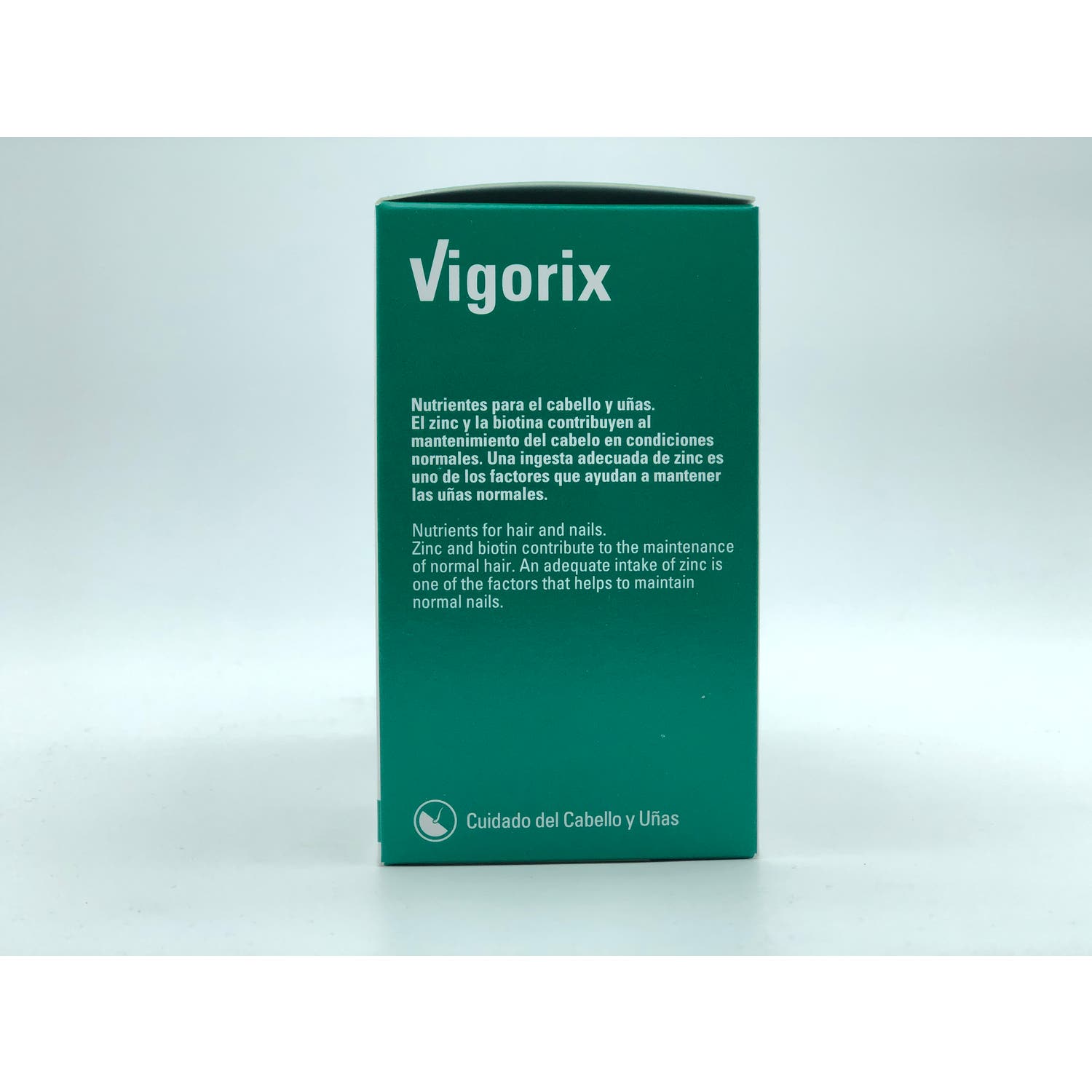 Vigorix es un complemento alimenticio que ayuda a fortalecer el cabello desde su raíz y a estimular la producción de queratina para tratar las uñas quebradizas. Su fórmula contiene L-cistina, ácido pantoténico, vitamina B6, biotina, hierro y zinc.
