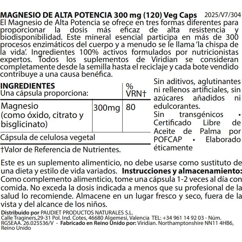 Los ingredientes son 100% activos formulados por nutricionistas expertos. Todos los suplementos de Viridian se consideran completamente desde la semilla hasta el reciclaje y cada bote vendido contribuye a una causa benéfica.