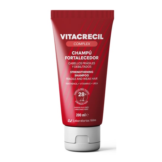 Vitacrecil Complex Forte Champú Fortalecedor 200ml es un champú que limpia el cabello, a la vez que lo nutre y fortalece desde la raíz.