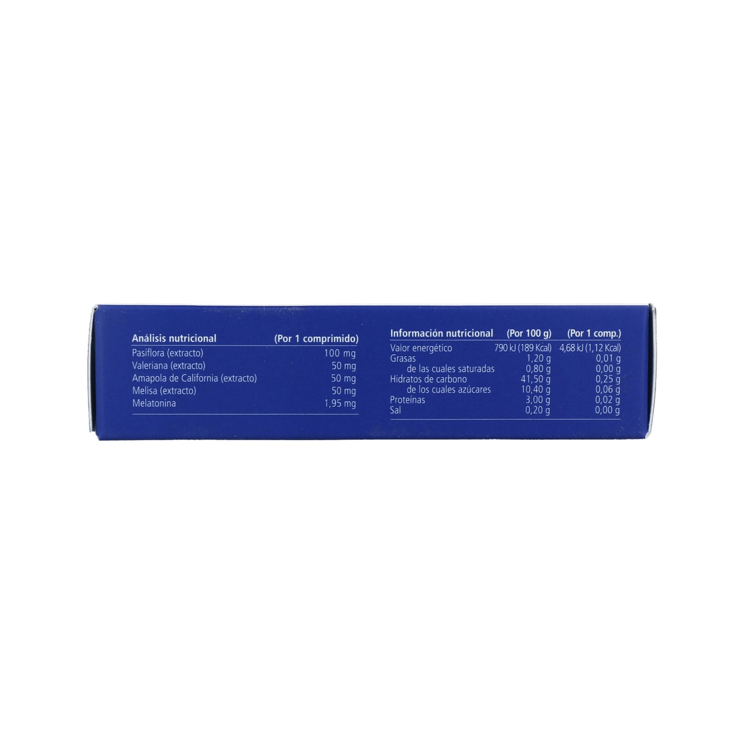Su fórmula permite la liberación del comprimido en 2 etapas. La melatonina, que se encuentra en el recubrimiento, se libera con rapidez y favorece el sueño. Por otro lado, los extractos naturales de valeriana, pasiflora, amapola de California y melisa, hallados en el interior del comprimido, se liberan posteriormente para facilitar la calidad del sueño.