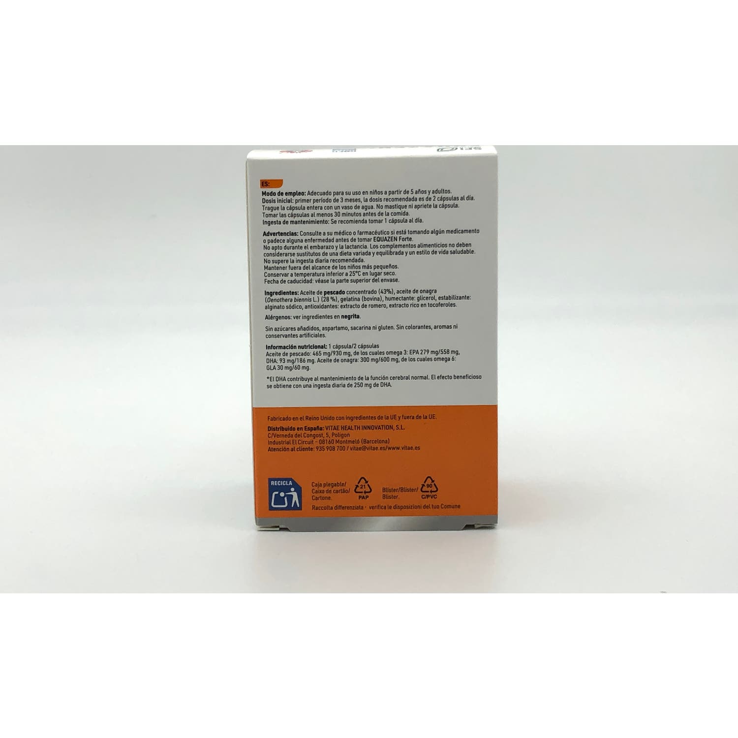 Vitae Equazen Forte 60caps es un complemento alimenticio rico en ácidos grasos omega 3 y 6 que contribuyen al bienestar físico y mental. Extraídos de aceite de pescado y de onagra.