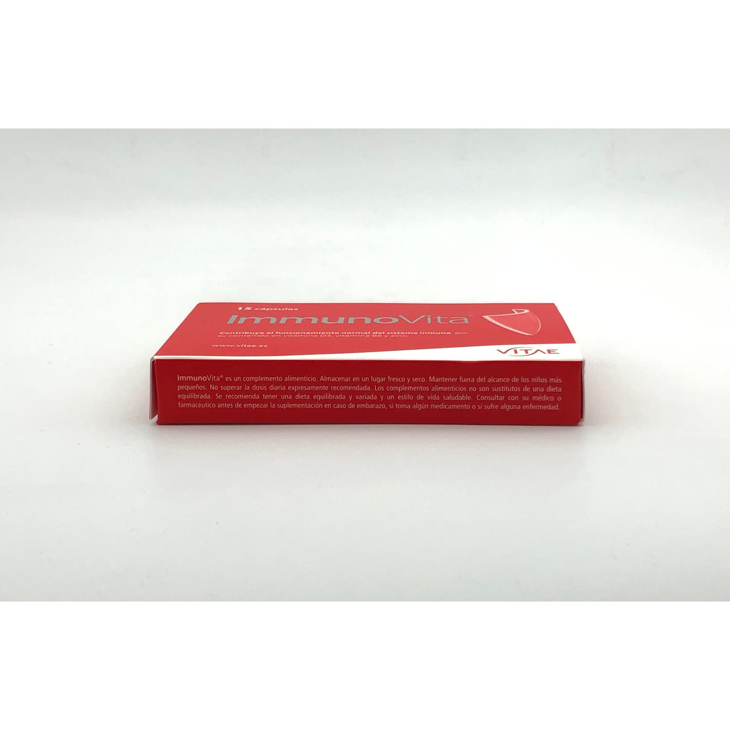Vitae ImmunoVita 15caps es un suplemento con betaglucanos purificados de la levadura Saccharomyces cerevisiae, vitamina D3, vitamina B6 y zinc.