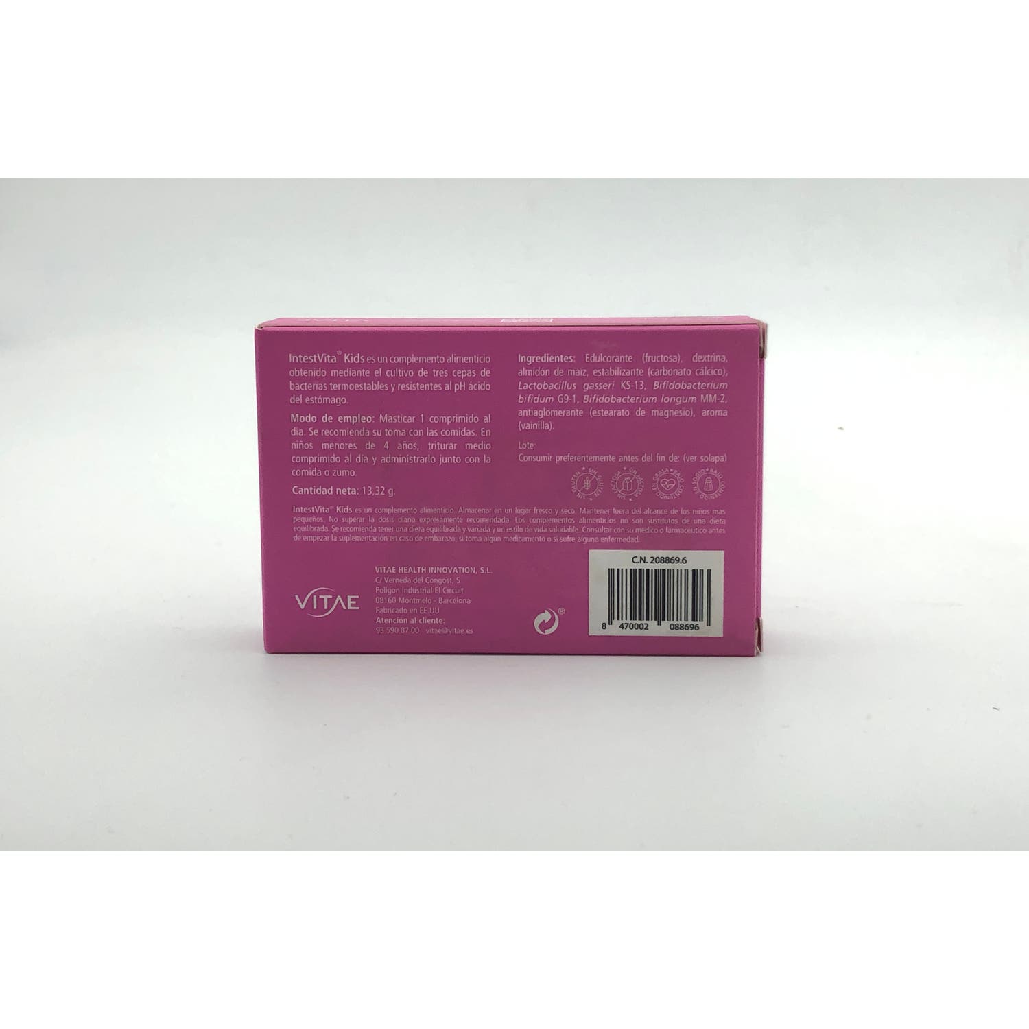 Vitae IntestVita Kids 30comp es un complemento alimenticio a base de probióticos que ayuda a reequilibrar la flora intestinal. Está indicado para los más pequeños y contribuye a regular las alteraciones en la función intestinal. Contiene 30 comprimidos.