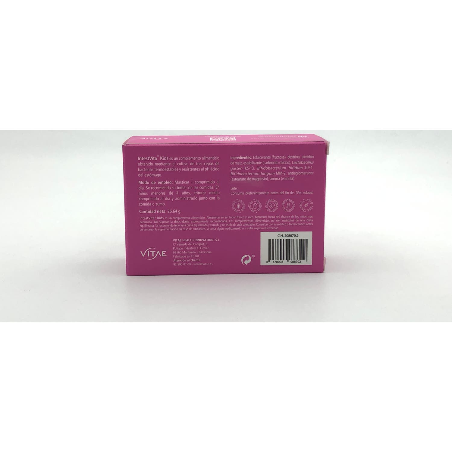 Vitae IntestVita Kids 60comp es un complemento alimenticio infantil elaborada a base de 3 cepas bacterianas presentes en el intestino.