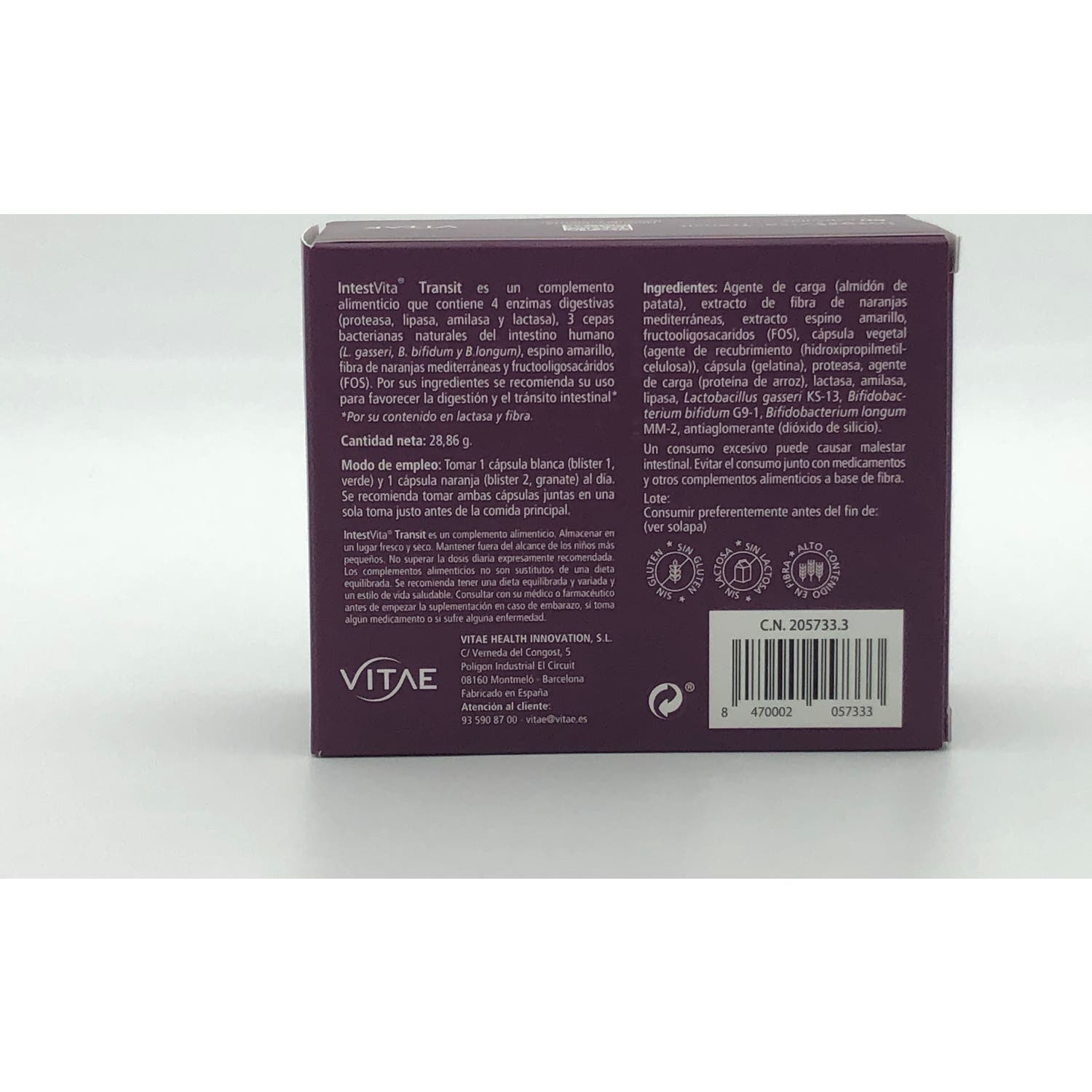 Vitae IntestVita Transit 60caps es un complemento alimenticio que favorece la digestión y facilita el tránsito intestinal sin efectos secundarios.