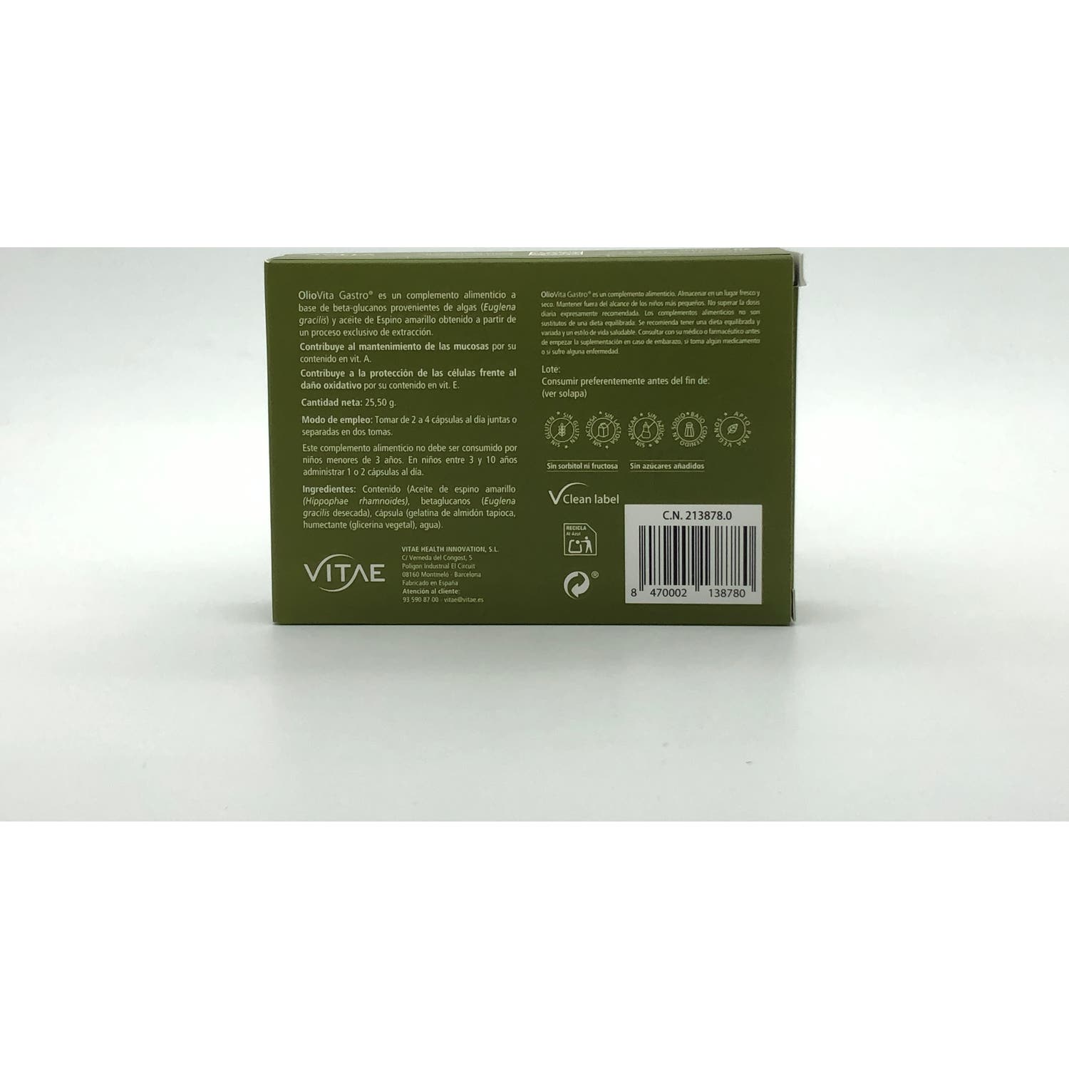 Vitae OlioVita Gastro 30caps es un complemento alimenticio que contribuye al bienestar gastrointestinal, gracias a su fórmula con aceite de espino amarillo y betaglucanos.
