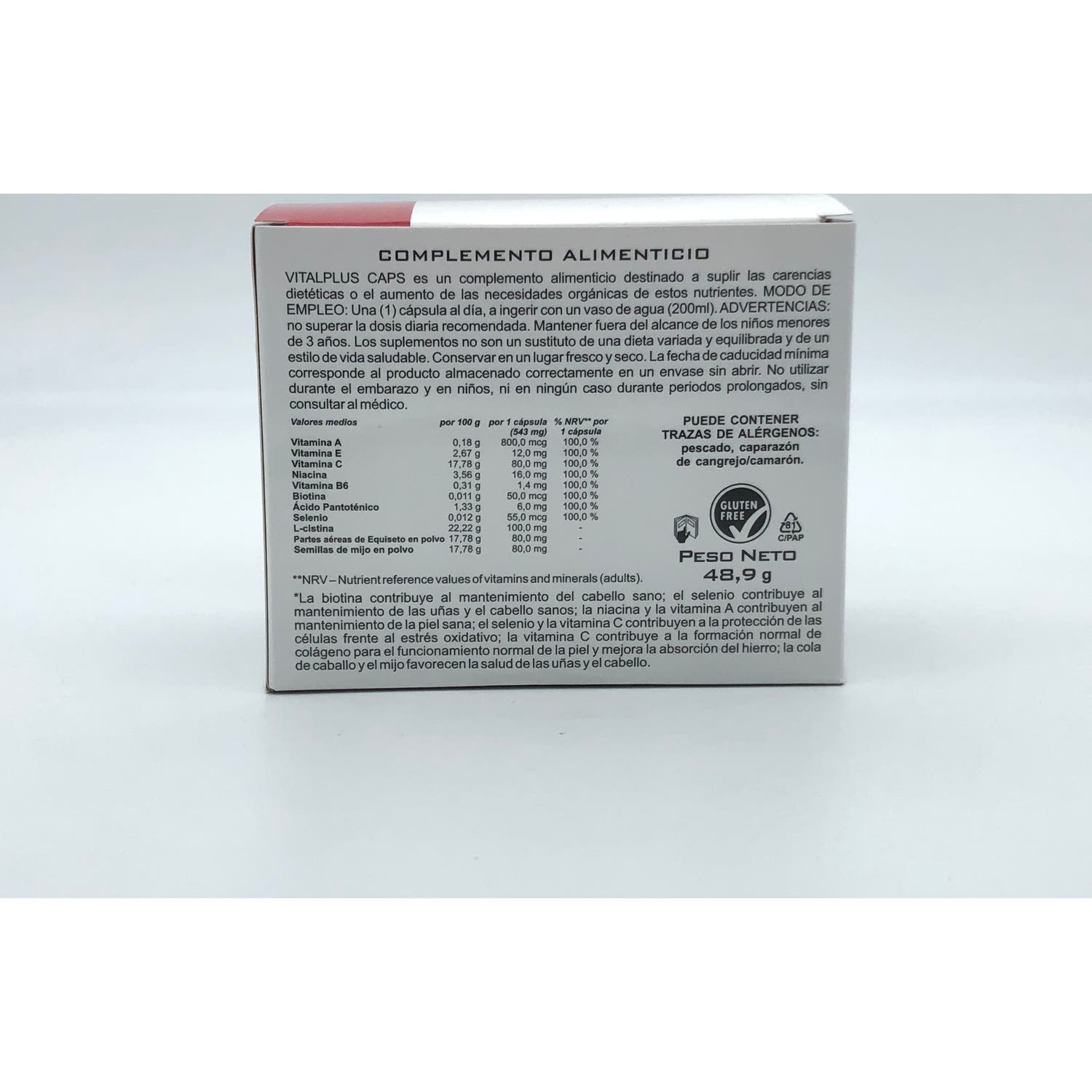 Vital Plus 90caps es un complemento alimenticio multivitamínico que ayuda a proteger la piel y el cabello de los procesos degenerativos y del envejecimiento cutáneo.