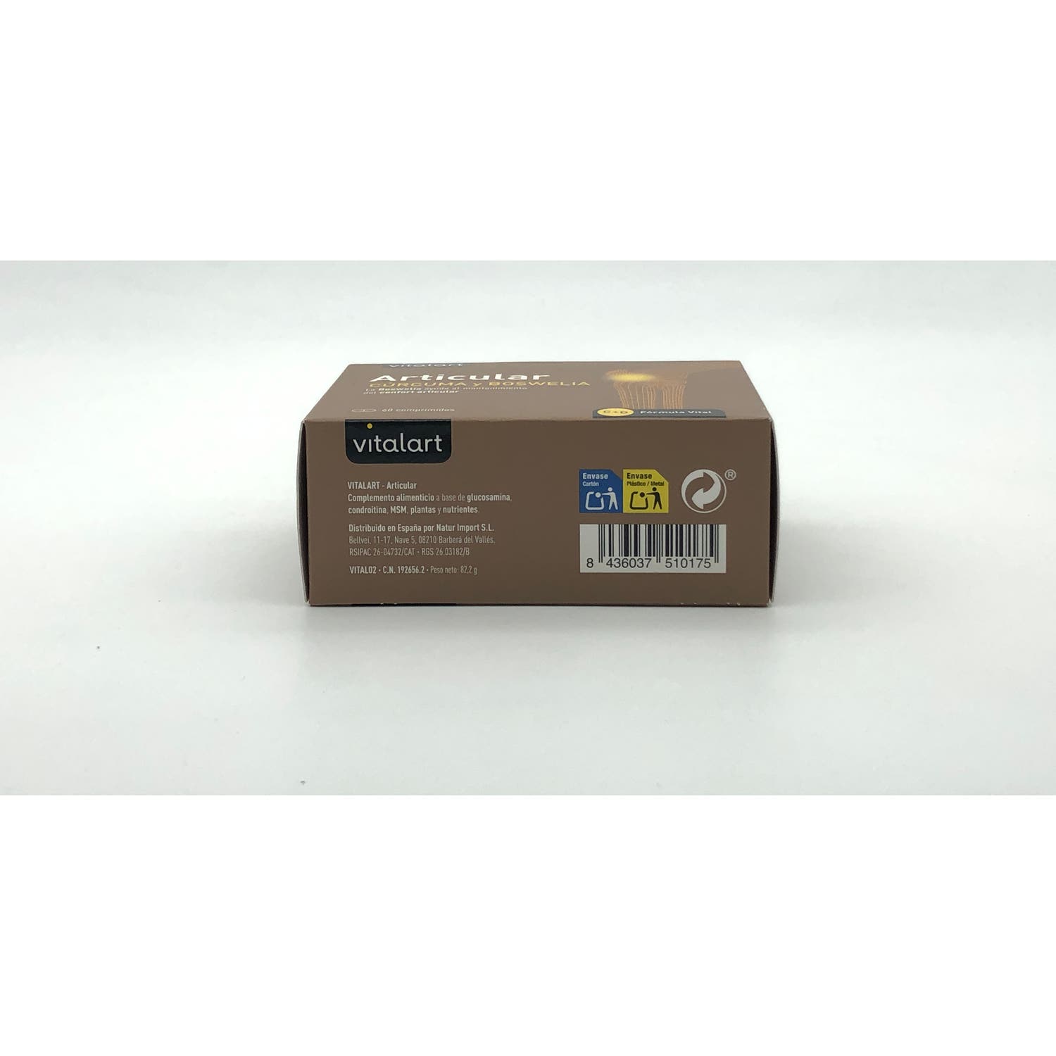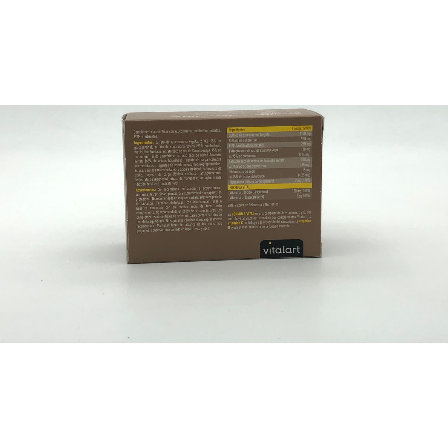 Vitalart Articular 60comp es un complemento alimenticio que aporta nutrientes y activos para ayudar al cuidado de las articulaciones del cuerpo. Contiene glucosamina, condroitina, extractos de cúrcuma y boswellia. Aporta vitamina C y D que ayudan a mantener los tejidos del cuerpo óptimos. Aporta minerales como el manganeso que ayuda a fortalecer los huesos, a producir energía y proteger las células. No suplanta a una dieta sana y equilibrada.