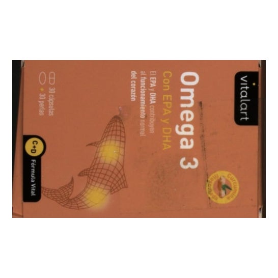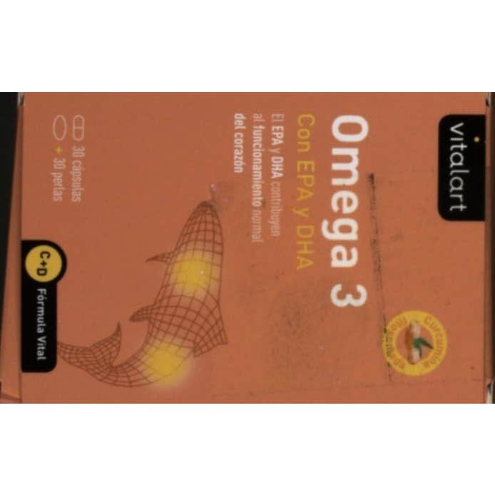 Vitalart Omega 3 con Epa y Dha 30caps + 30 Perlas es un complemento alimenticio a base de aceite de pescado de alta concentración en Omega 3 que contribuye al bienestar coronario y cerebral.