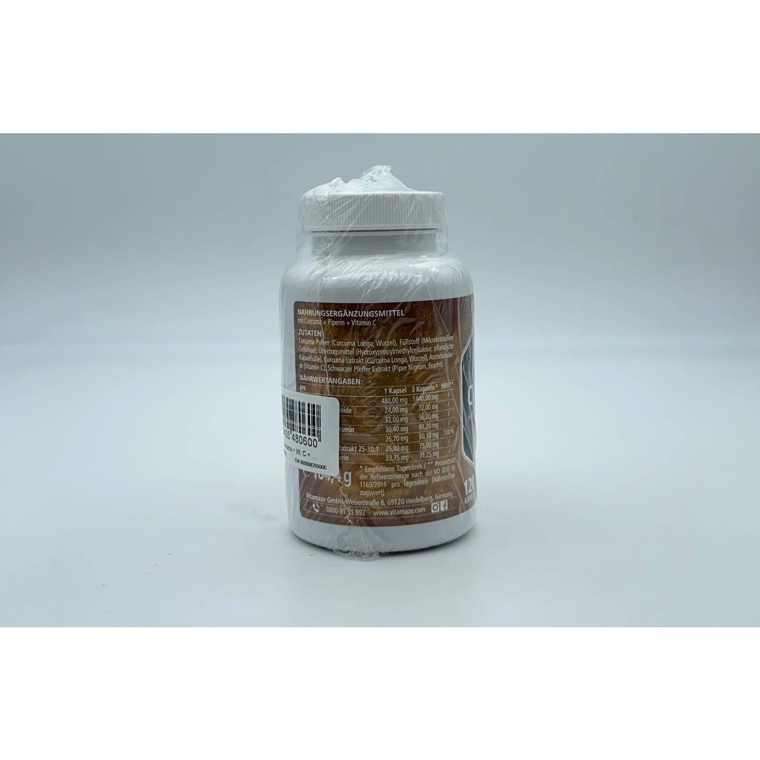 Vitamaze Cúrcuma + Piperina + Vitamina C Vegano 120caps es un complemento alimenticio que ayuda a aumentar la biodisponibilidad del extracto de cúrcuma y sus propiedades antiinflamatorias, entre otras.