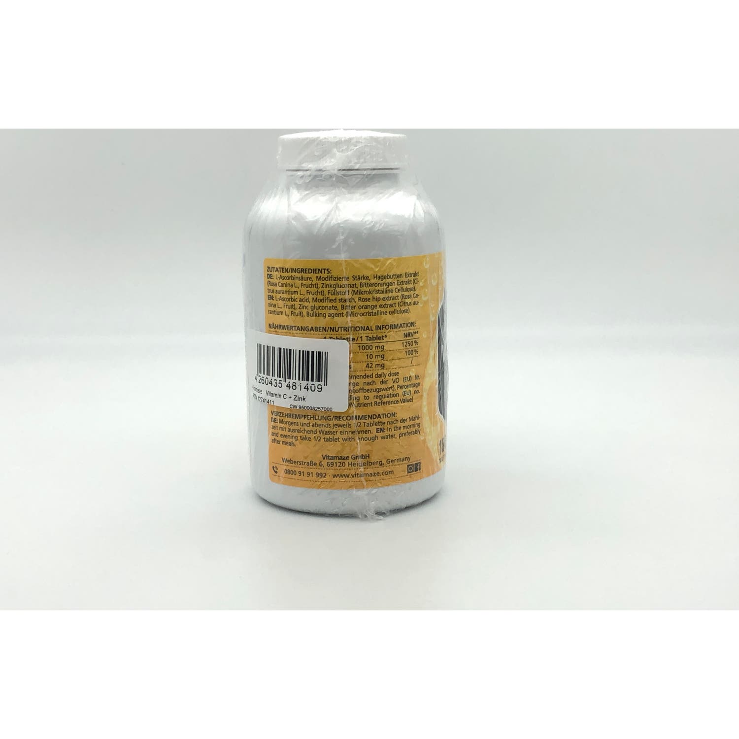 Vitamaze Vitamina C + Zinc Vegano 180comp es un complemento alimenticio a base de colágeno, ácido hialurónico, condroitina y lisina que contribuye al mantenimiento normal de los huesos y la piel.