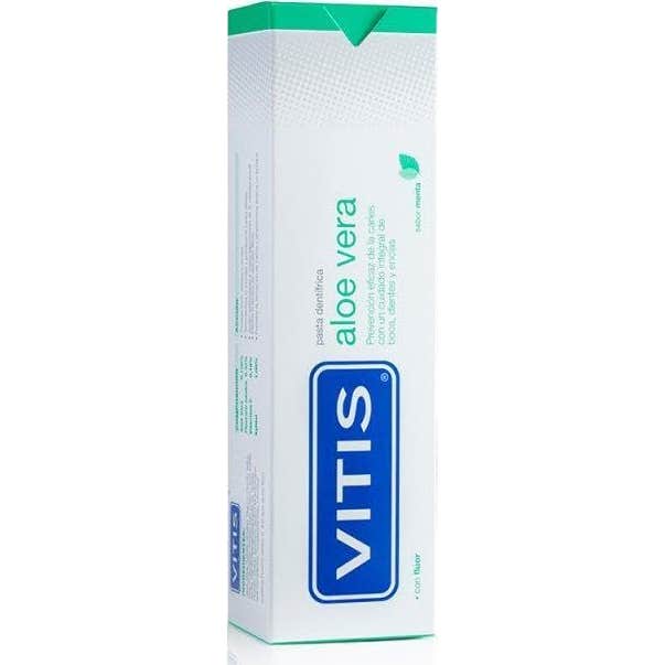 Vitis Aloe Vera Menta Pasta Dentífrica 100ml es un dentífrico que proporciona un cuidado integral de la boca, los dientes y las encías.