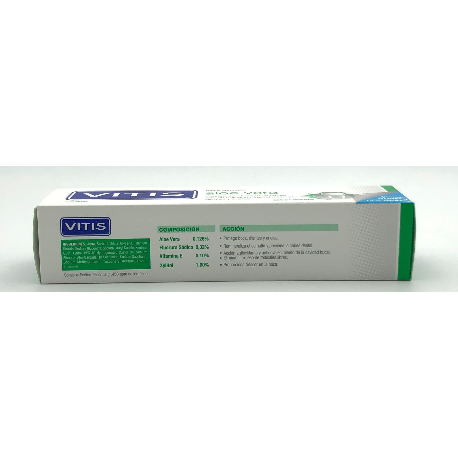 Vitis Dentífrico Aloe Vera - Menta 150ml es un dentífrico que proporciona un cuidado integral de la boca, los dientes y las encías.