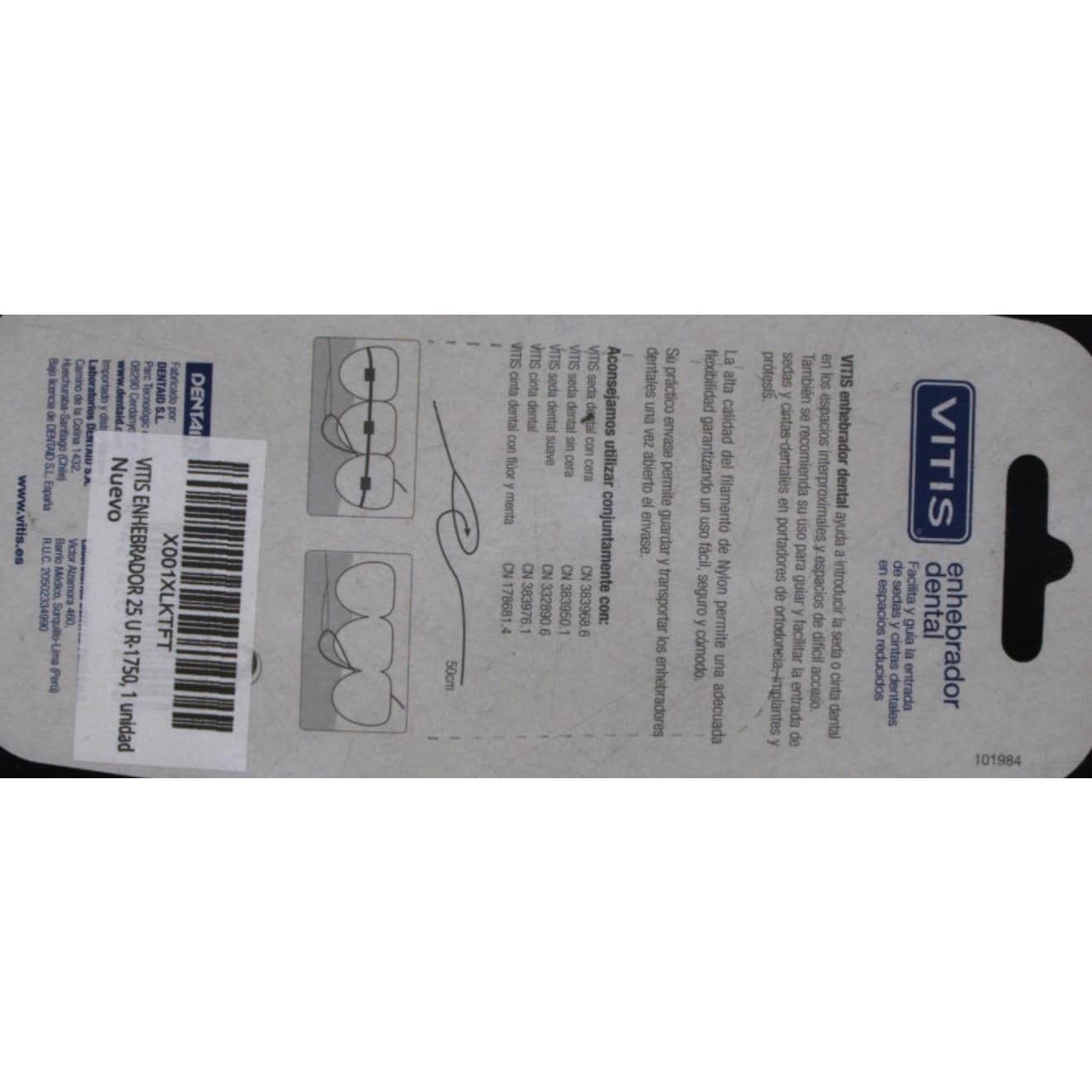 Vitis Enhebrador Dental 25uds facilita la extracción de los alimentos y limpia en profundidad los dientes. El enhebrador permite introducir la seda dental en espacios profundos y de difícil acceso gracias a su punta semirígida.