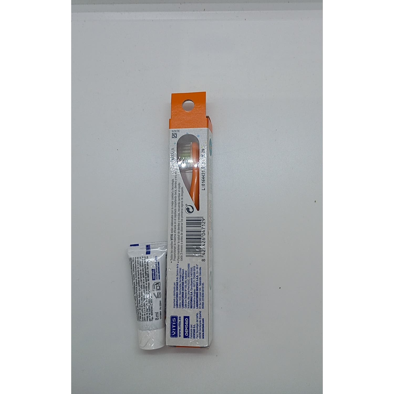 Vitis Kids Cepillo Dental +3 años es un cepillo dental para niños fácil de manejar y con una textura suave y agradable que limpia sus dientes sin dañar sus encías.