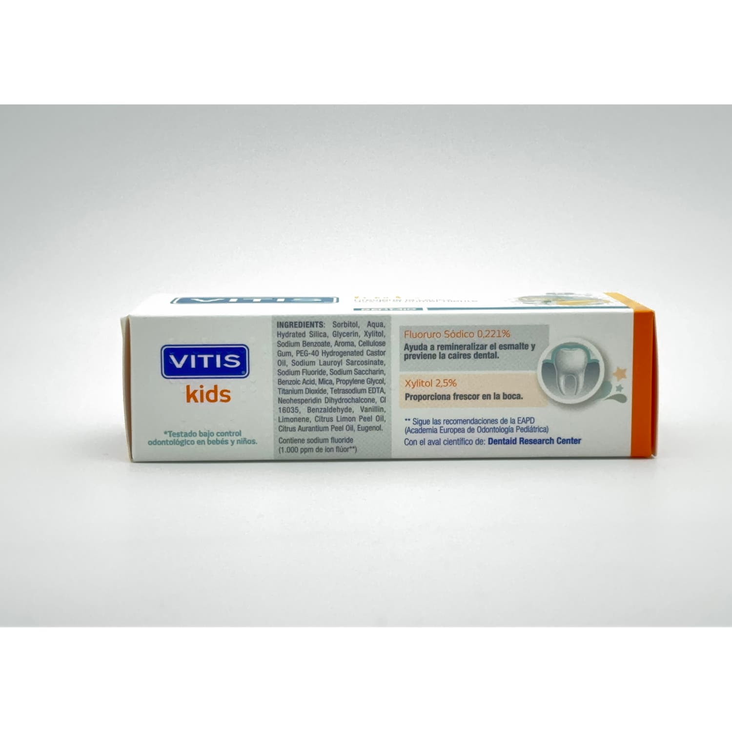 Vitis Dentífrico Kids 50ml es una pasta dental diaria para niños de 2 a 6 años. Formulado especialmente para mantener sanos los dientes de leche en niños mayores de 2 años, con sabor a cereza.