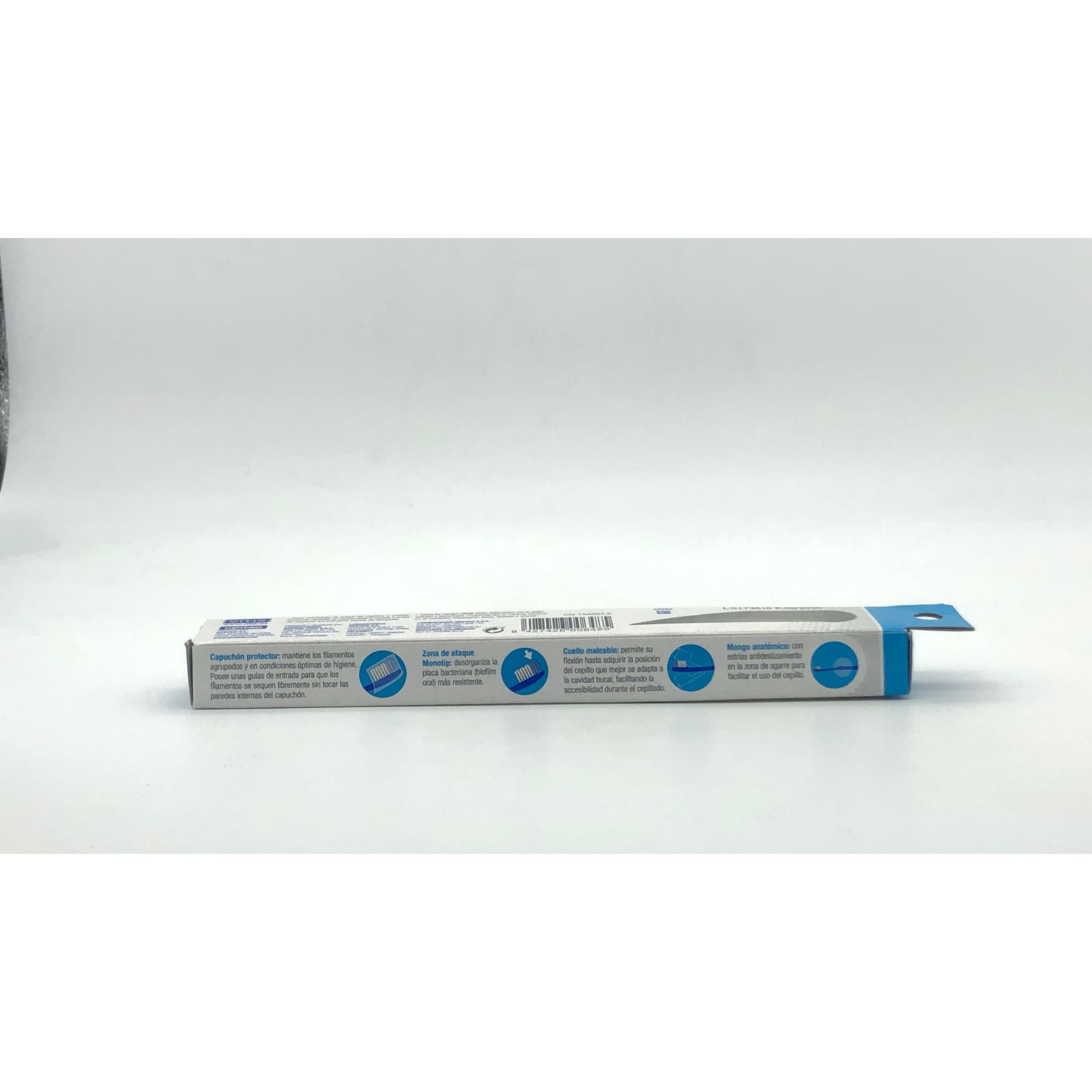 Diseñado con filamentos de dureza media y por un cabezal de forma diamantada que ayuda a acceder a cada uno de los espacios interdentales.