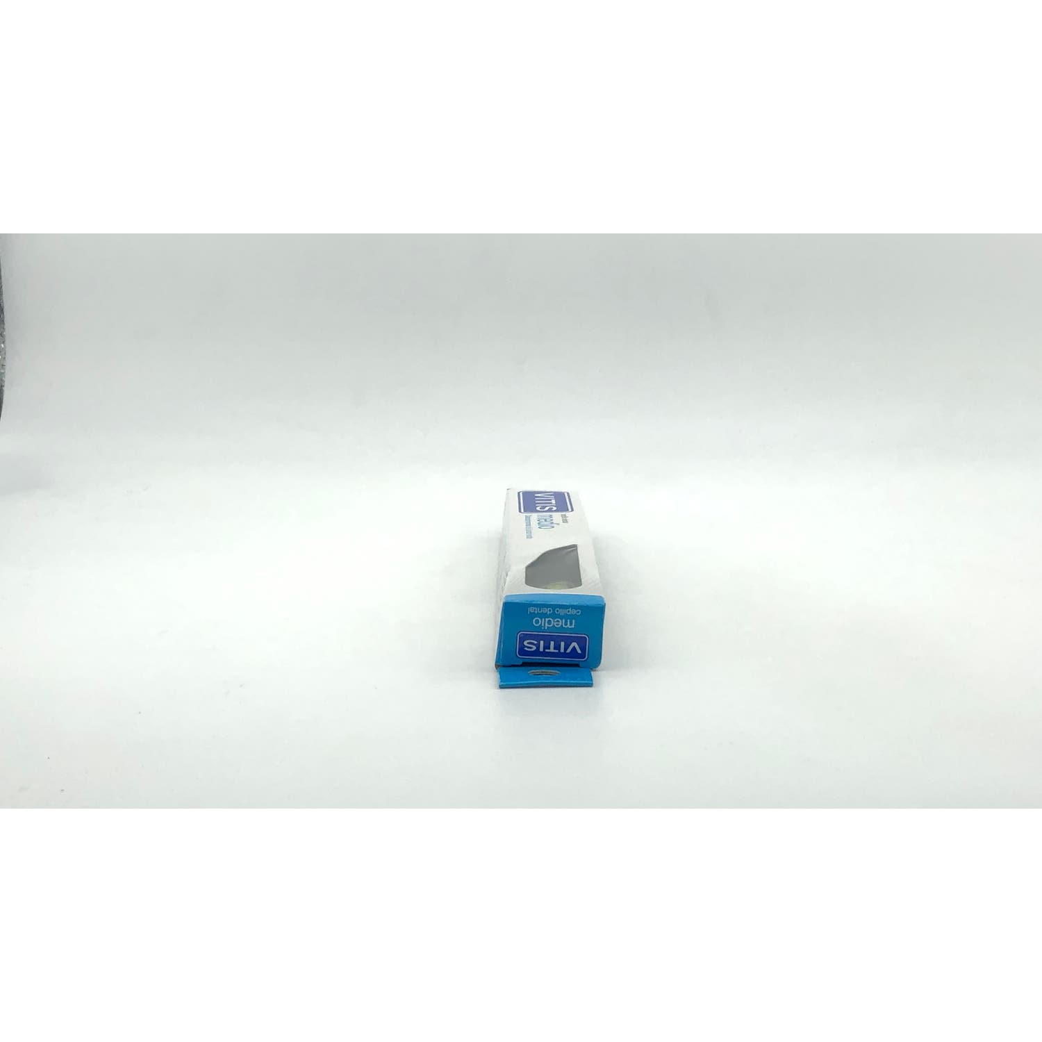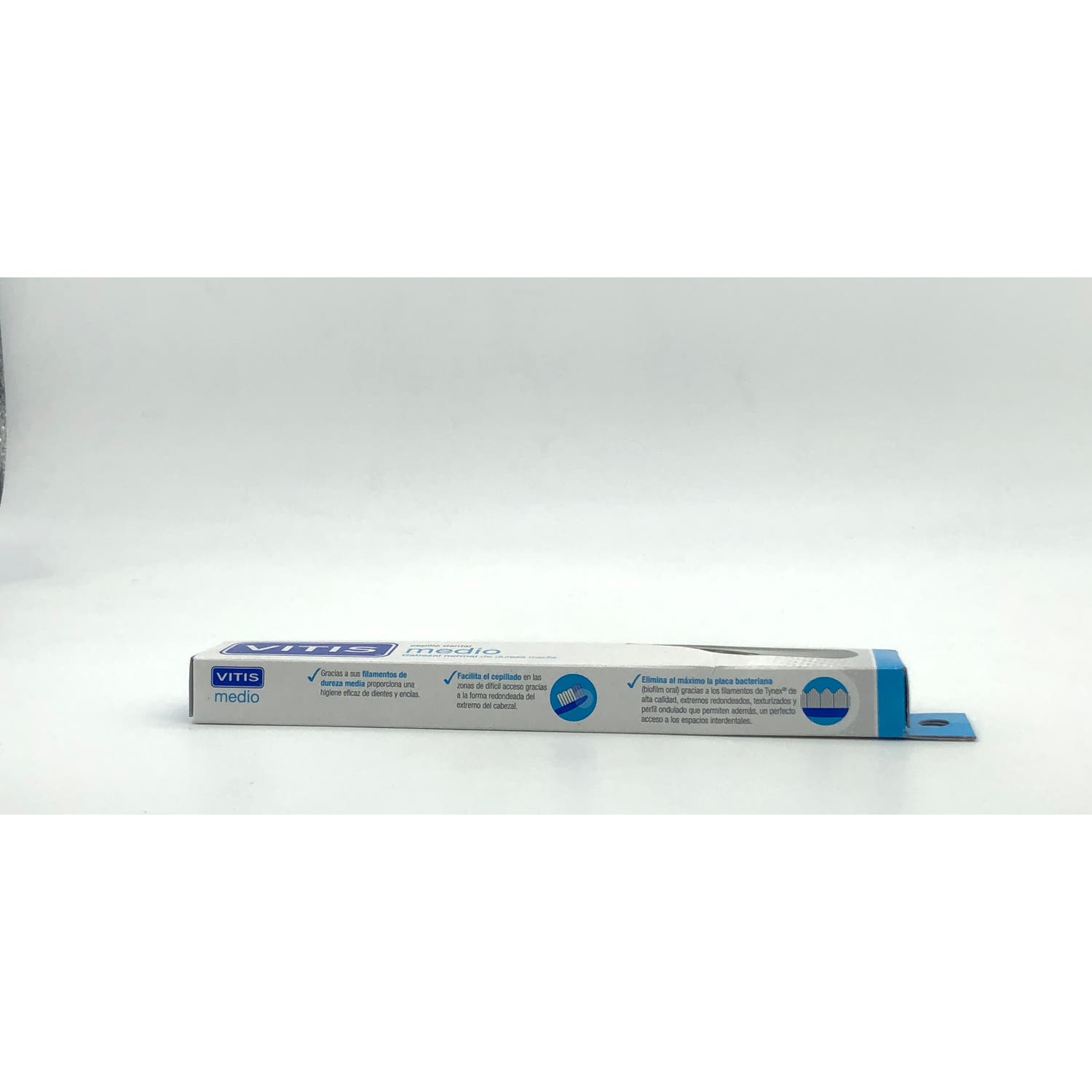 Vitis Medio Cepillo Dental es un cepillo de dureza media que ayuda a mantener la higiene de la cavidad bucal, sobre todo de aquellas personas que no presentan inicialmente una especial sensibilidad dental.