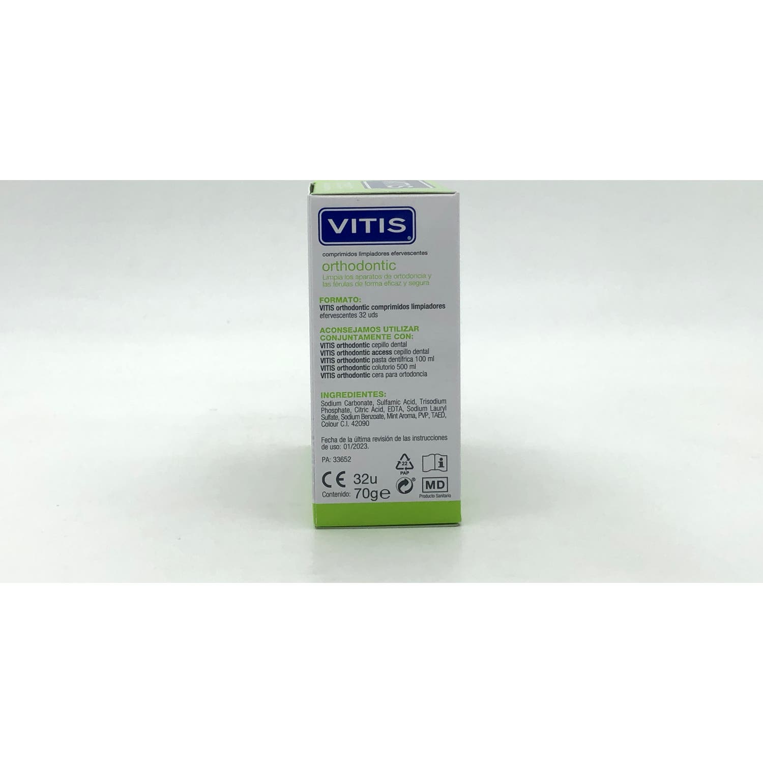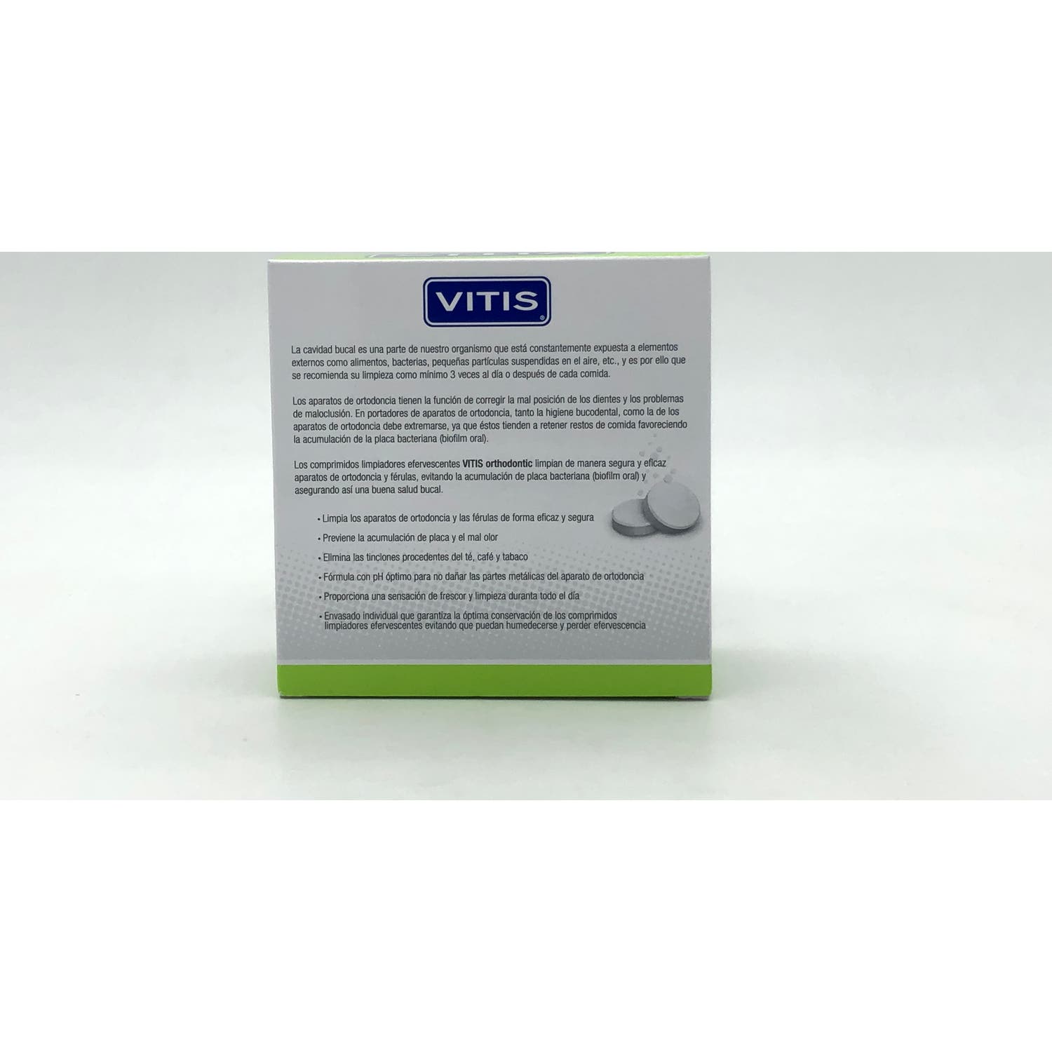 Vitis Orthodontic 32 comprimidos efervescentes está específicamente diseñado para limpiar de forma segura y eficaz los aparatos de ortodoncia. Protegerás y cuidarás tu salud bucal, evitando la acumulación de placa bacteriana.