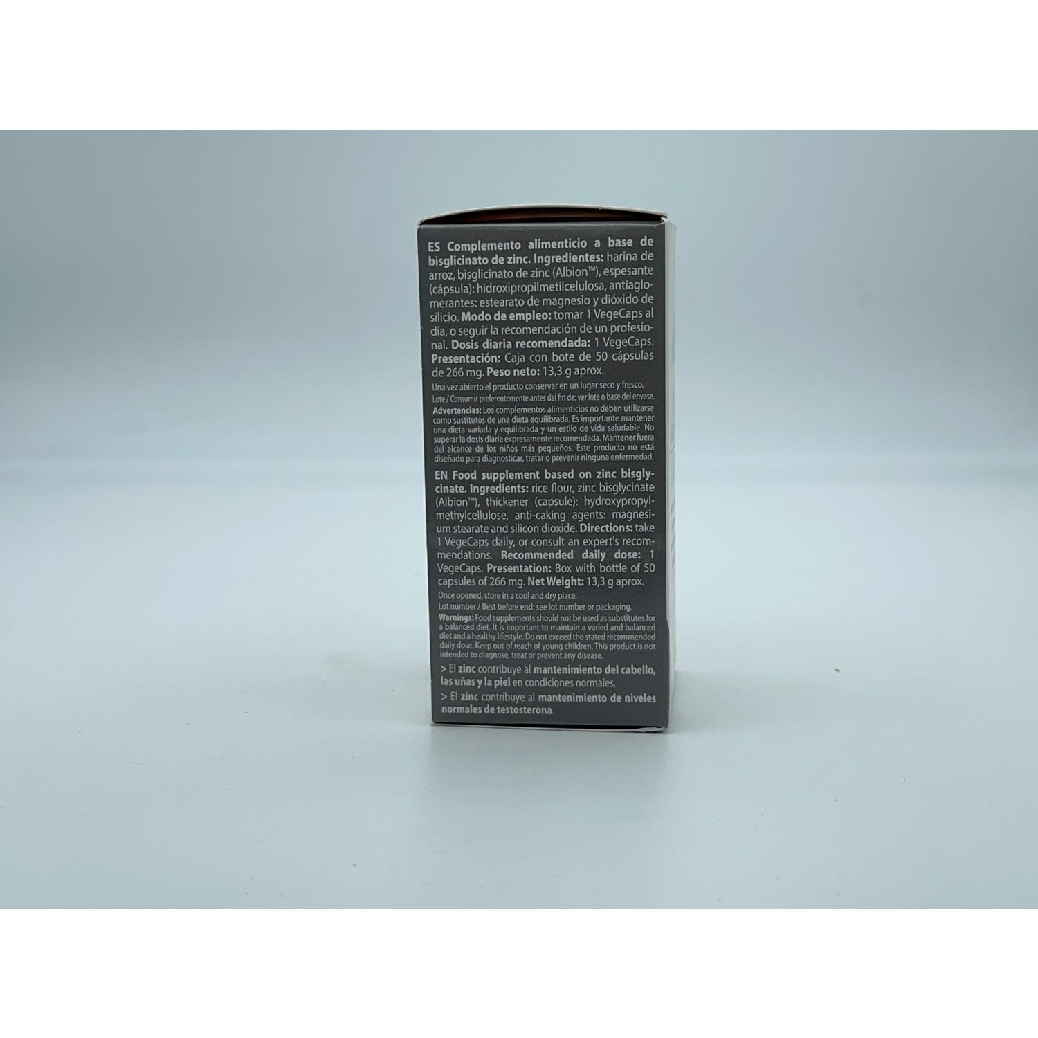 Suplemento que ofrece un gran bienestar general al ser el zinc su principal base, el cual ayuda a estimular la actividad de más de cien enzimas que favorecen el metabolismo de proteínas, ácidos grasos y el funcionamiento adecuado del sistema inmune. Es ideal para el desarrollo de los huesos, también beneficia la cicatrización de heridas, en la percepción del gusto, del olfato y en la síntesis de ADN, además de mantener las funciones oculares óptimas.