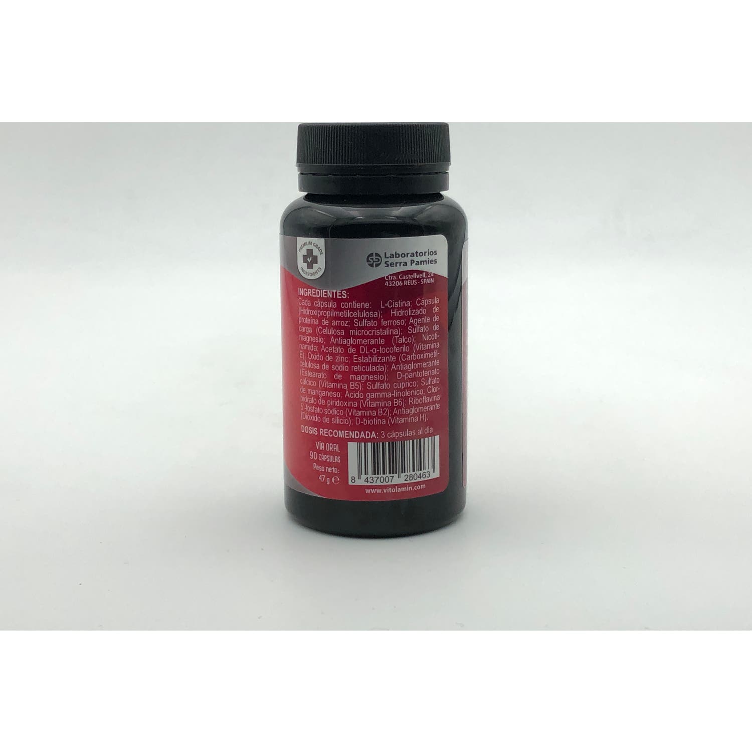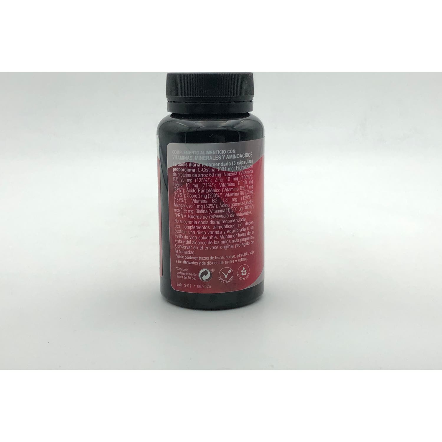 Zinc, Biotina, Vitaminas B2, B3, B5, B6, E y H. L-CISTINA, Hierro, Cobre, Magnesio, Manganeso, Ácido Gamma-Linolénico.